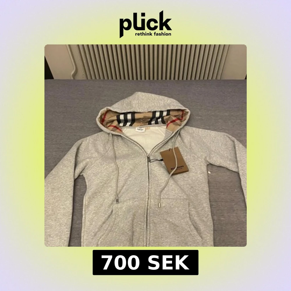 Snygg grå hoodie från Burberry i bomull med klassiskt rutigt foder i huvan. Tröjan har dragkedja framtill, snörning vid huvan och två fickor. Perfekt för dig som vill ha en stilren och lyxig vardagslook.