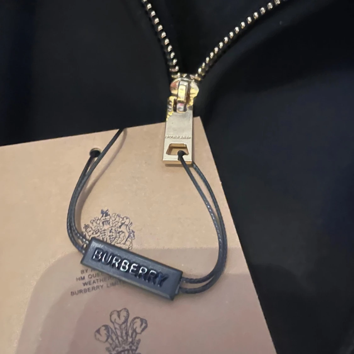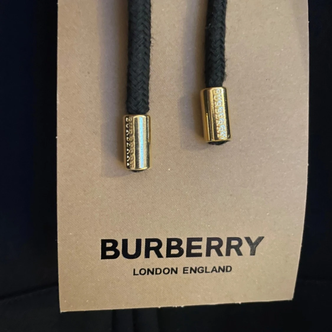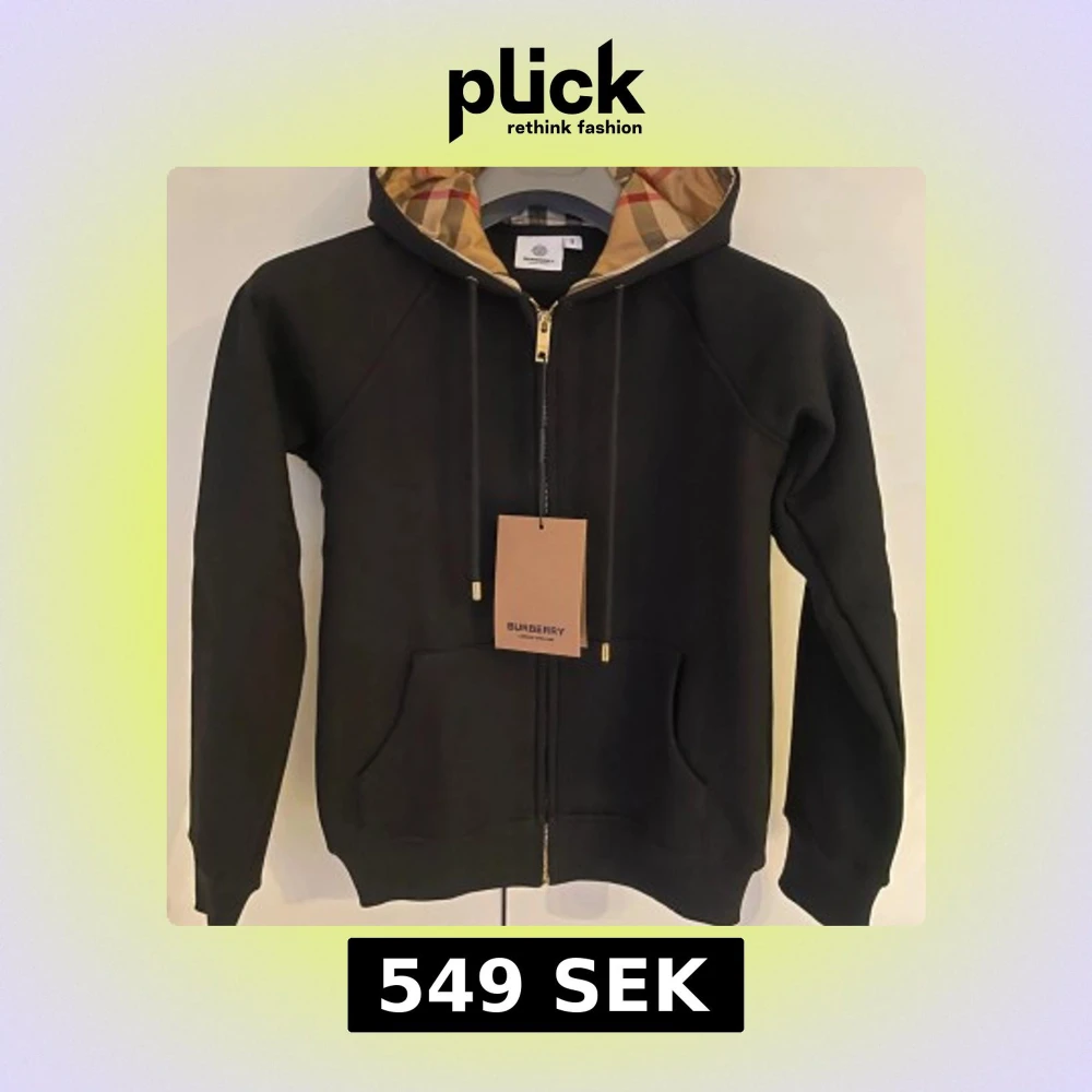 Säljer en svart hoodie från Burberry med dragkedja och klassiskt rutigt foder i huvan. Tröjan har guldiga detaljer på dragkedjan och snörändarna samt två fickor framtill. Perfekt för dig som gillar lyxiga streetwear-plagg.