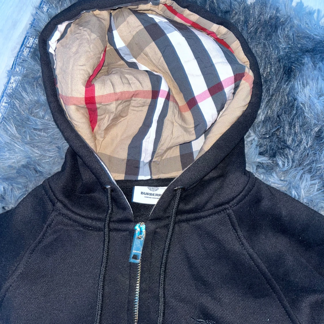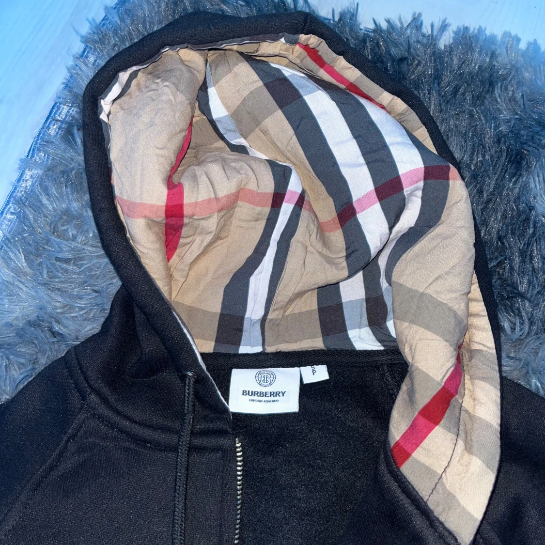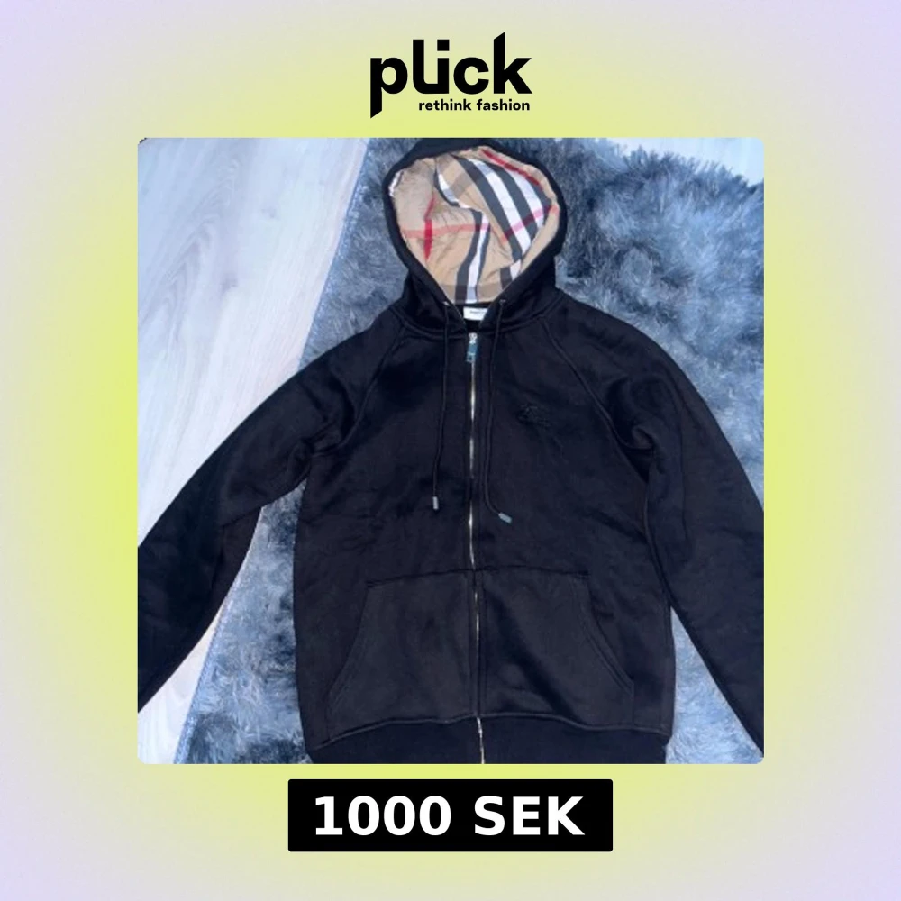 Svart dragkedje-hoodie med dubbla fickor fram och luvans rutmönstrade foder. Stilren och varm vardagshoodie — passar både till vardag och ute.