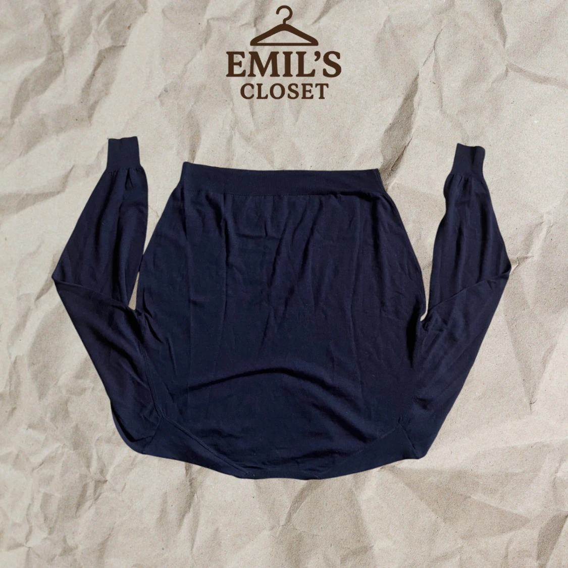 Mörkblå burberry sweatshirt i merino ull, finns slitningar på muddarna. Storlek M. Tveka inte på att höra av dig.