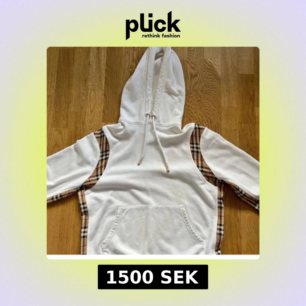 Snygg vit hoodie från Burberry med klassiska beige, svarta och röda rutiga paneler längs sidorna och ärmarna. Tröjan har huva med snörning och en stor magficka framtill. Perfekt för dig som gillar streetstyle med lyxig touch. Den är äkta lappar finns. Pris diskuteras vid snabb affär