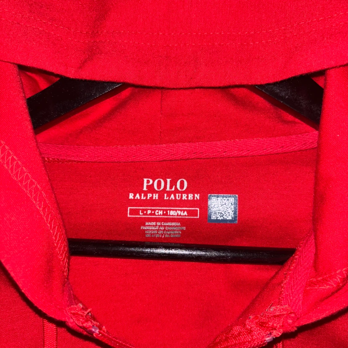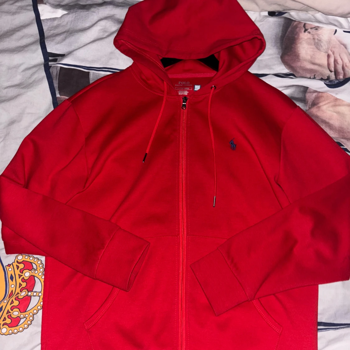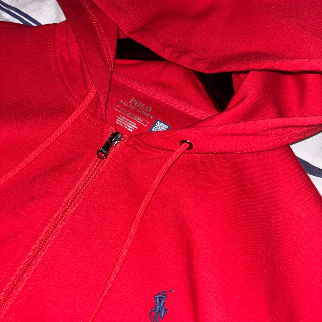 Riktigt snygg röd hoodie från Polo Ralph Lauren med dragkedja och huva. Klassisk blå broderad logga på bröstet och praktiska fickor framtill. Perfekt för dig som vill ha en stilren och bekväm tröja med streetkänsla. Priset kan diskuteras!!