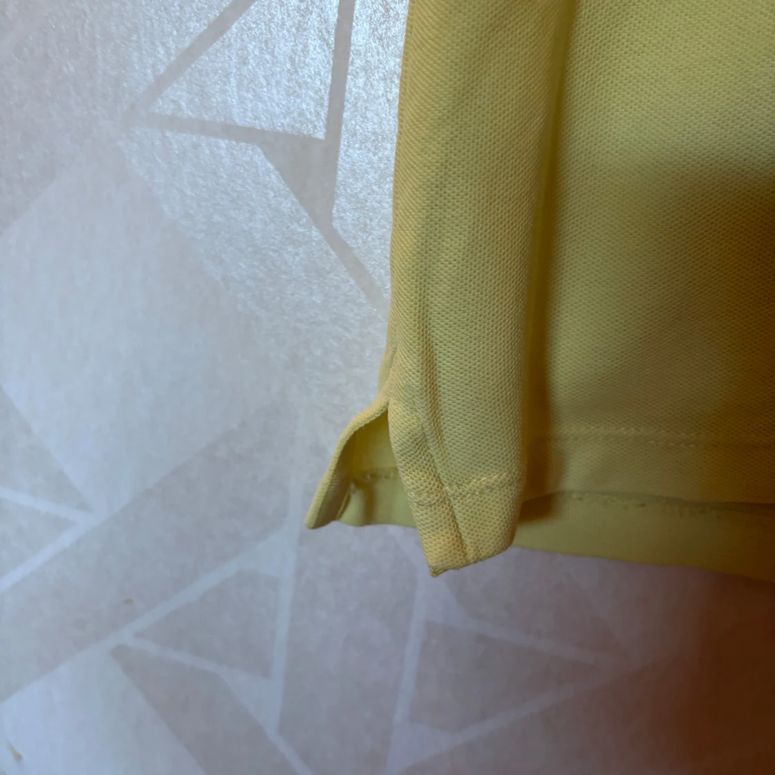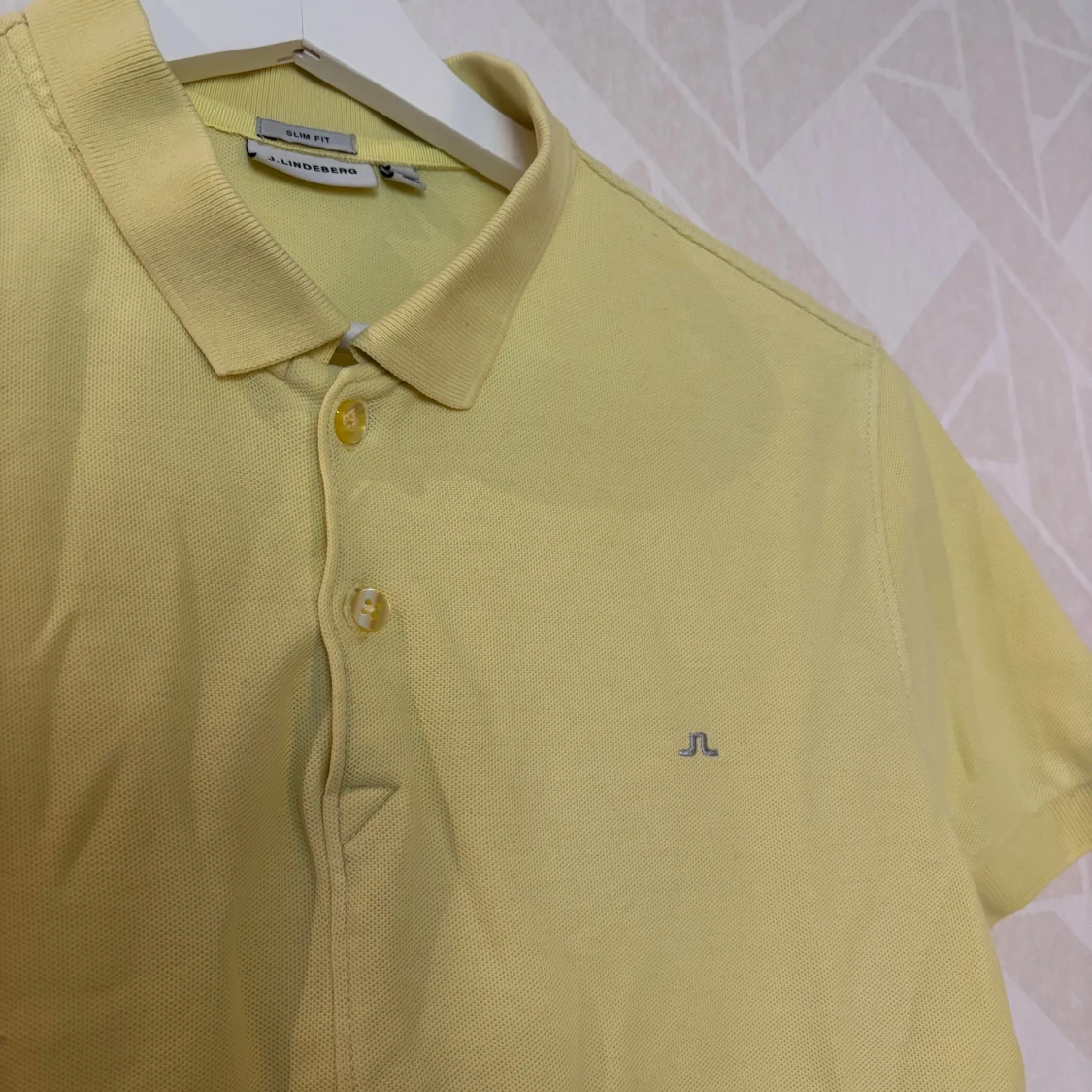Fräsch gul pikétröja från J.Lindeberg i slim fit-modell. Klassisk krage, korta ärmar och två knappar framtill. Nypris 560kr. Liten defekt på sista bilden, därav priset.