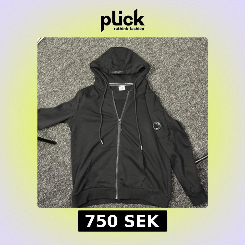 Svart hoodie från C.P. Company med dragkedja, huva med snörning och klassisk linsdetalj på ärmen. Tröjan har känguruficka framtill och är tillverkad i mjuk bomullsmix. Perfekt för en chill och stilren look.