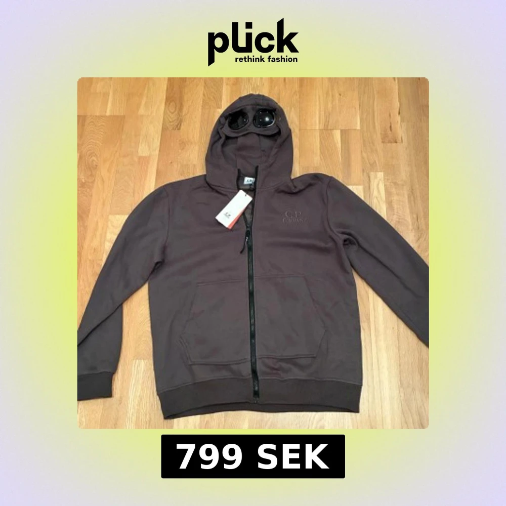 Säljer en brun hoodie från C.P. Company med ikoniska goggles i huvan. Tröjan har dragkedja framtill, två stora fickor och broderad logga på bröstet. Tillverkad i mjuk bomull och perfekt för dig som vill sticka ut med streetwear-vibe.