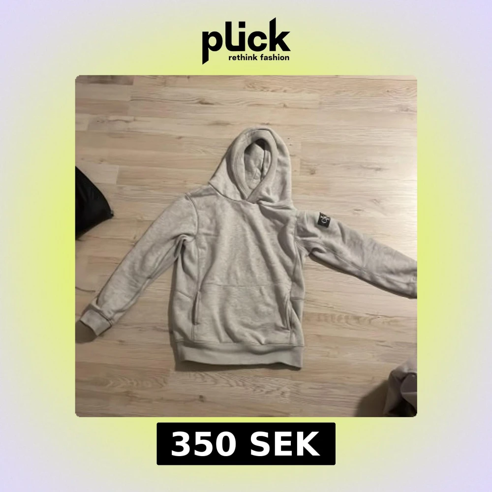 Säljer en stilren grå hoodie med en bekväm passform och praktiska fickor framtill. Perfekt för kyliga dagar och avslappnade stunder. Huvan ger extra värme och stil.