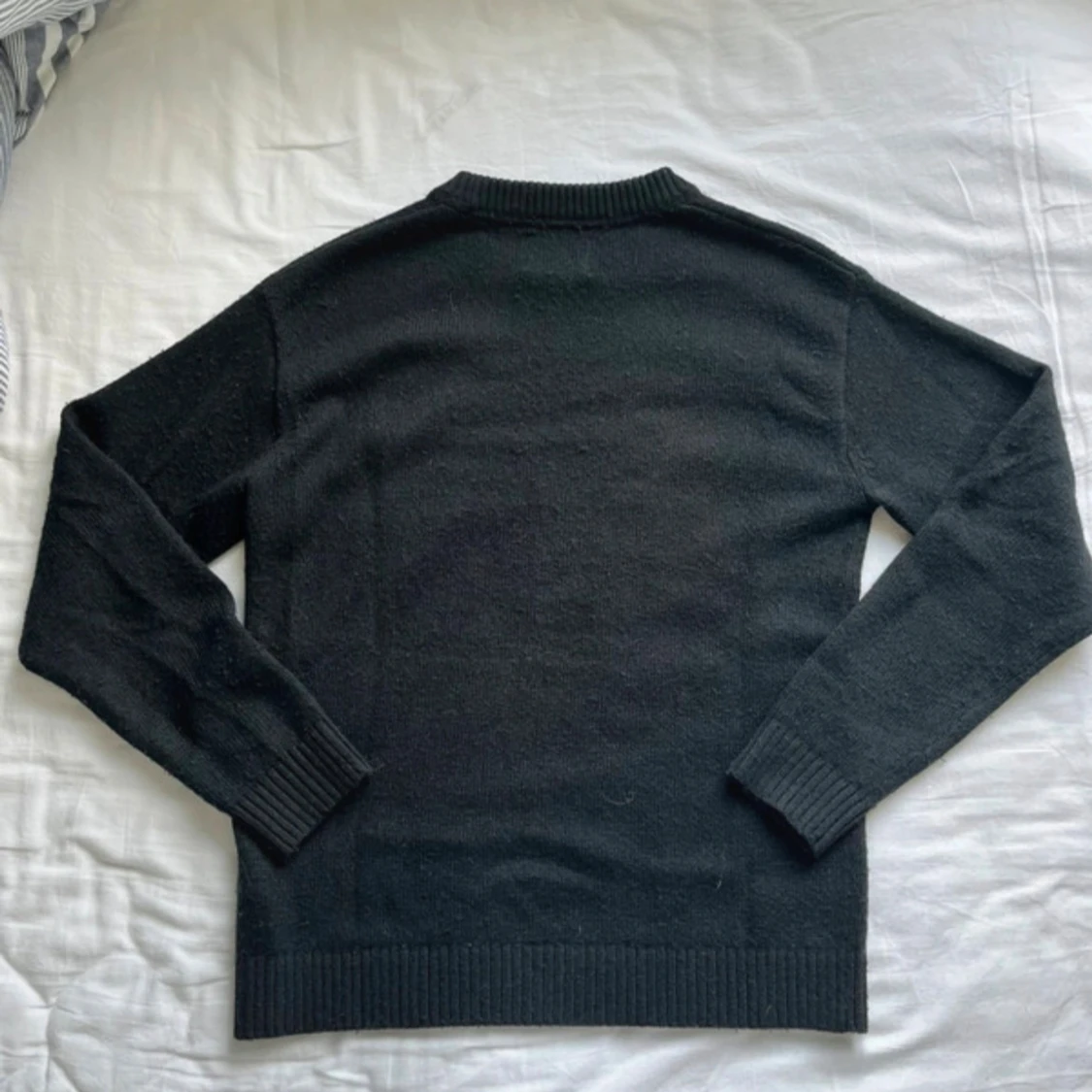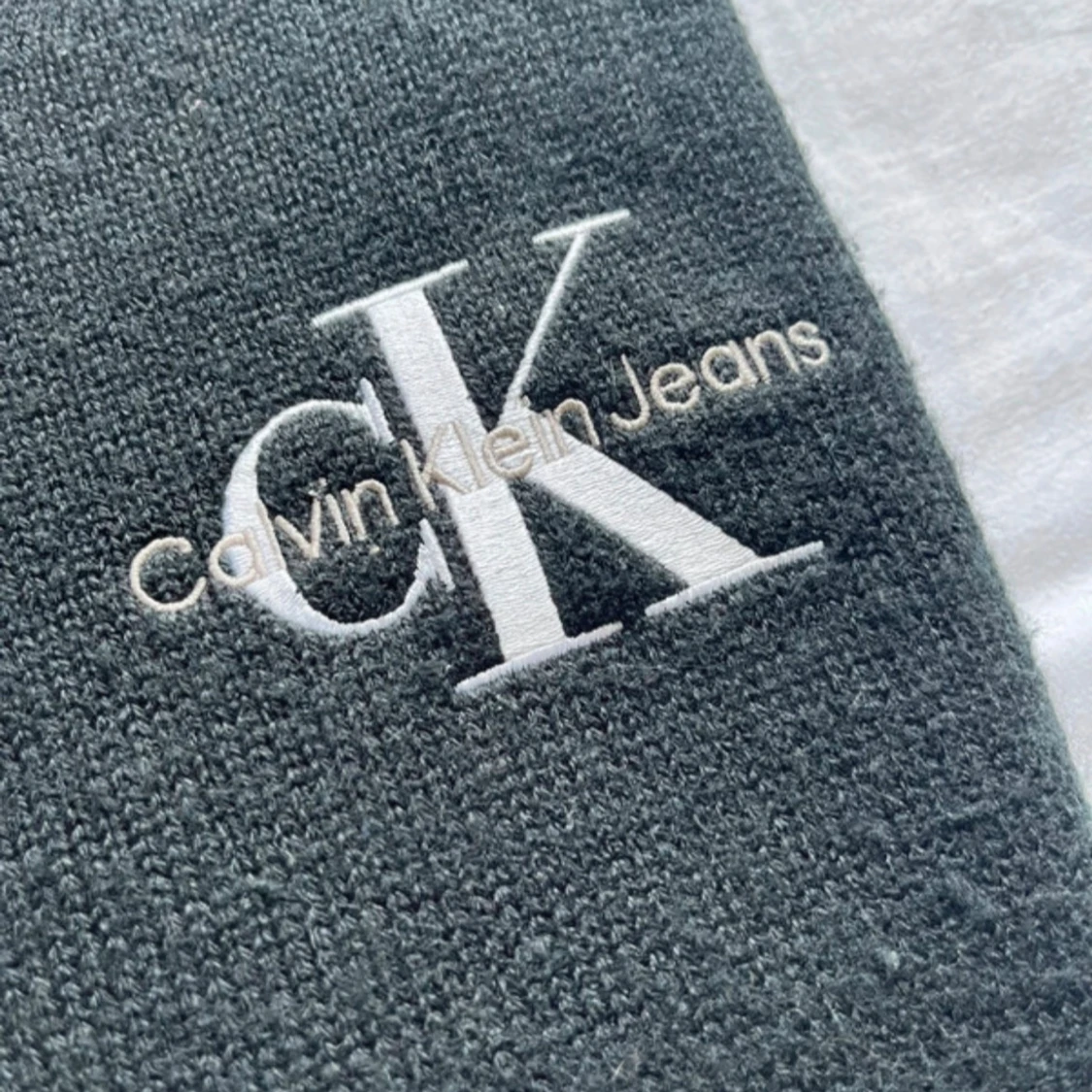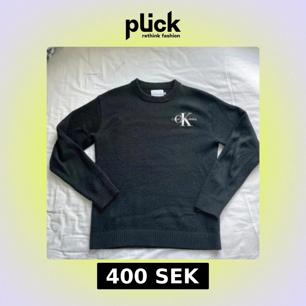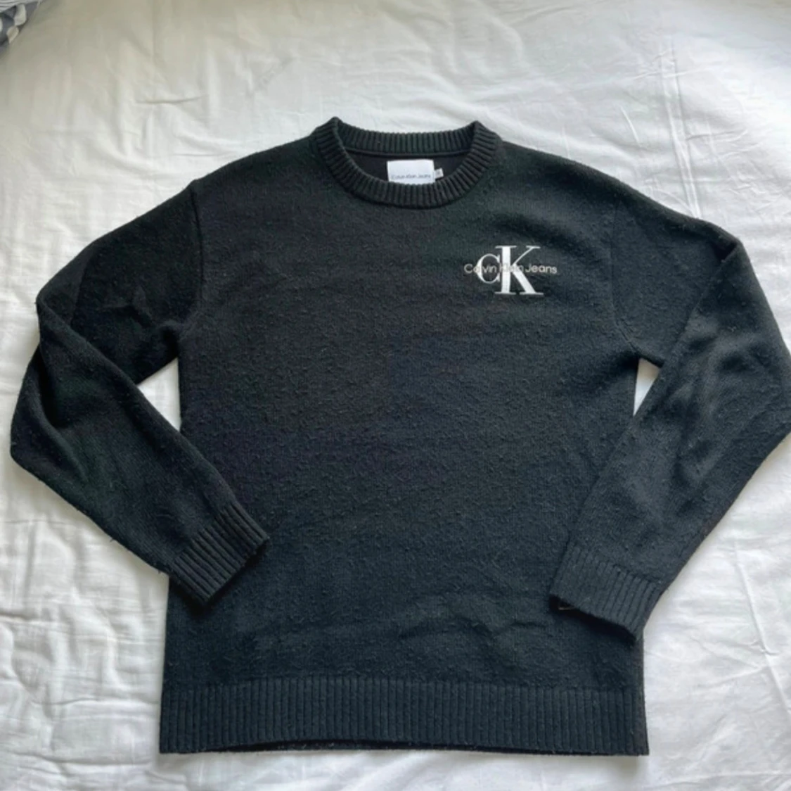 Svart stickad tröja från Calvin Klein Jeans med broderad CK-logga på bröstet. Klassisk rund halsringning och ribbade muddar vid ärmslut och nederkant. Perfekt för dig som gillar stilrena och tidlösa plagg.