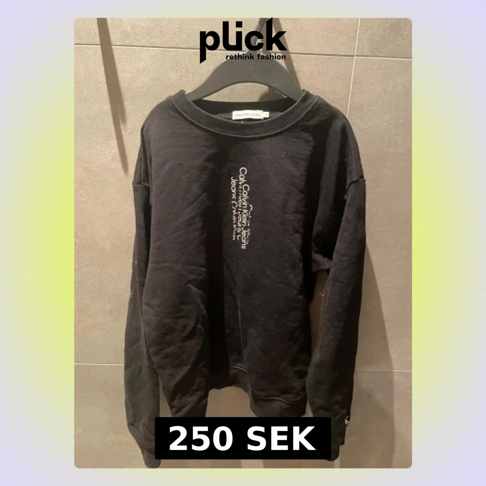 Svart sweatshirt från Calvin Klein Jeans med vit logotyp vertikalt på bröstet och liten CK-brodyr på ärmen. Tröjan har rund hals, ribbade muddar och är tillverkad i mjuk bomull. Perfekt för en chill och stilren look.