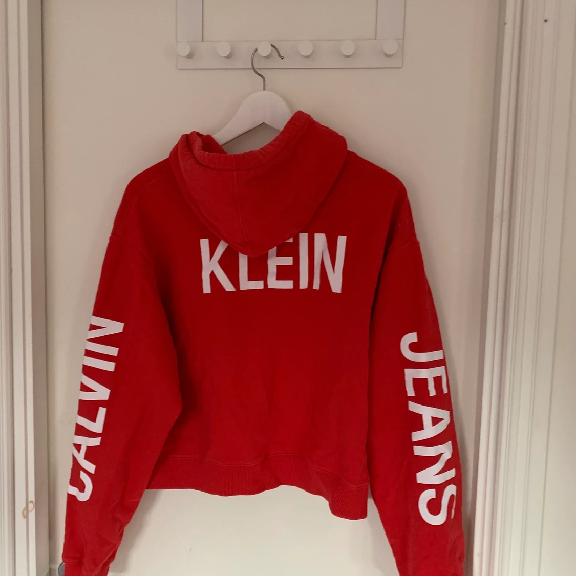 Säljer denna hoddie från Calvin Klein i strl L men är mer som M!💗 köpt för 550kr säljer för 250kr!