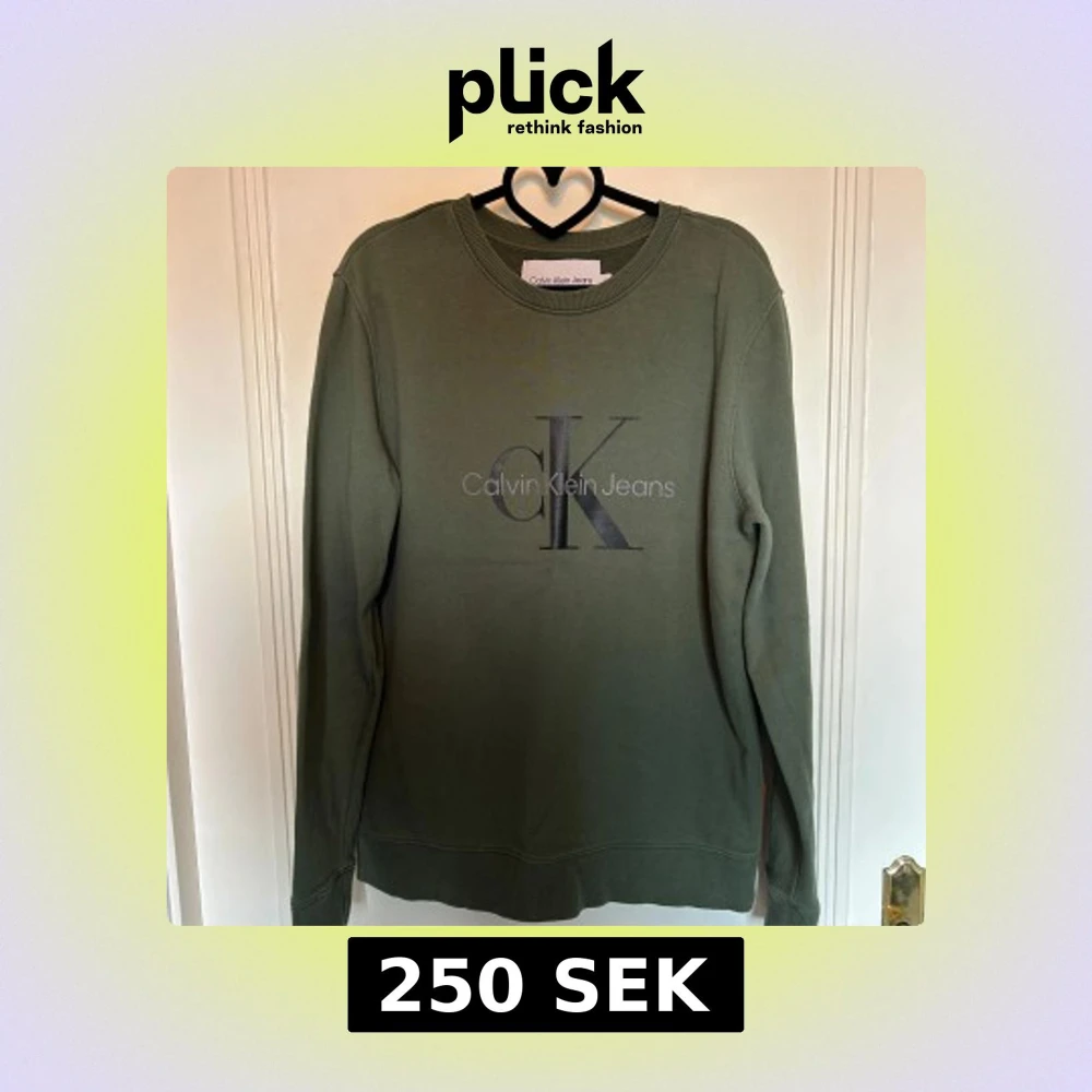 Olivgrön sweatshirt från Calvin Klein Jeans med stor CK-logga framtill. Den är i storlek L.