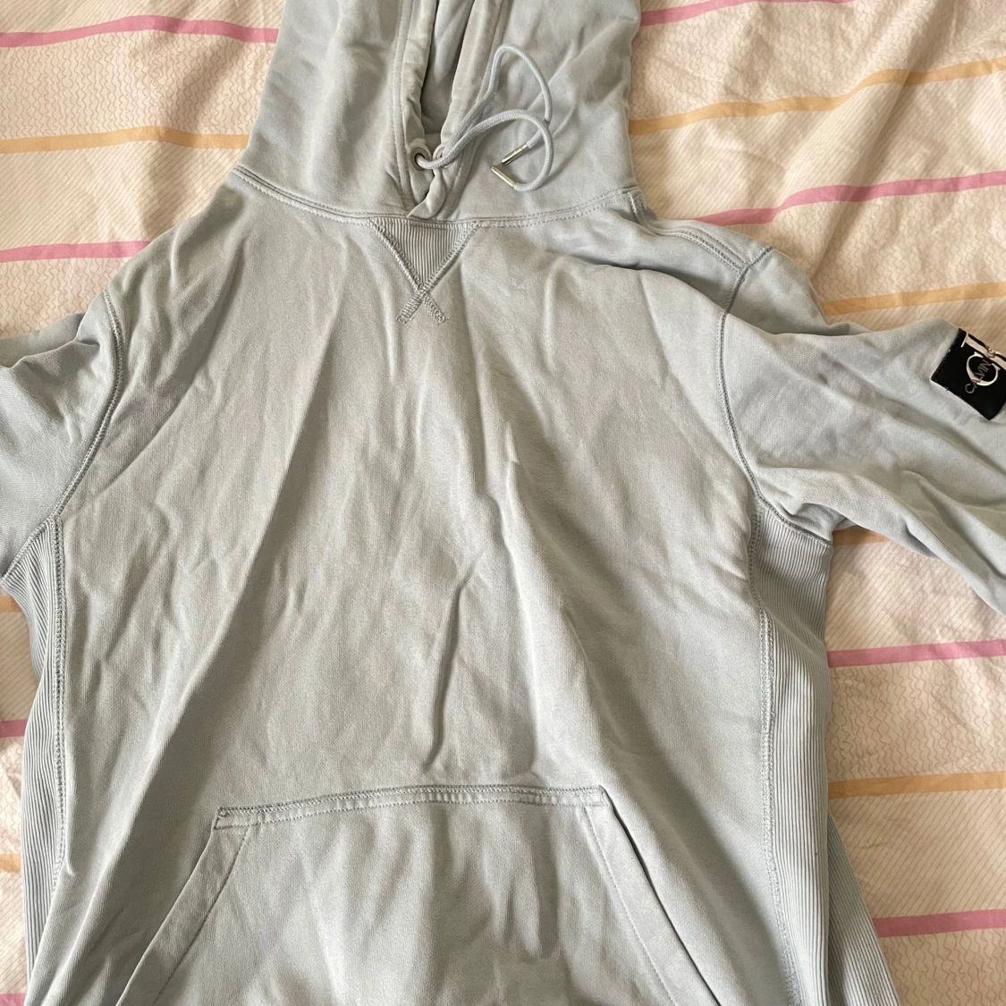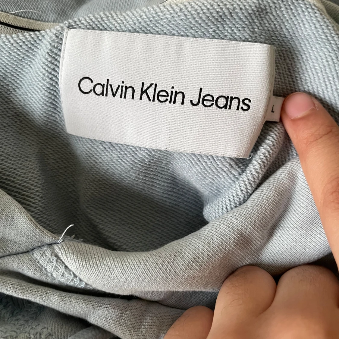 Snygg ljusgrå hoodie från Calvin Klein Jeans med stor CK-logga på ärmen. Tröjan har huva med snörning och en klassisk känguruficka framtill. Perfekt för en chill och stilren look. Den är nytvättad och behöver strykas