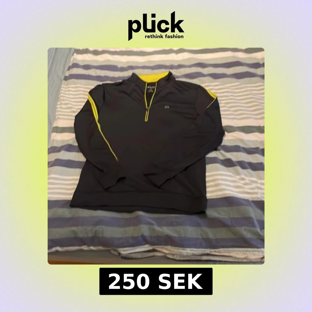 Snygg svart tröja från Calvin Klein med gula detaljer längs ärmarna och dragkedja. Perfekt för en sportig look. Tröjan har en liten CK-logga på bröstet och baksidan. Pris går alltid att förhandlas.