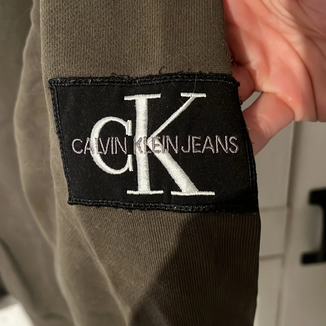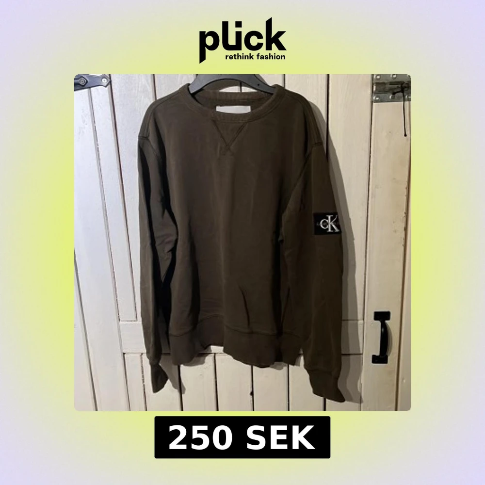 Olivgrön sweatshirt från Calvin Klein Jeans med klassisk rund hals och ribbade muddar. Stor CK-logga på ärmen ger en clean och stilren vibe. Perfekt för dig som gillar enkel men snygg streetstyle.
