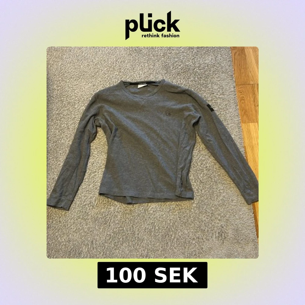 Säljer en stilren grå långärmad tröja från Calvin Klein. Tröjan har en diskret CK-logga på bröstet och en etikett på ärmen. Perfekt för en avslappnad look.Passar perfekt för personer som har S