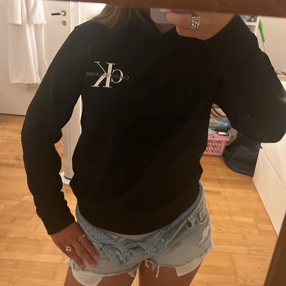 Svart hoodie från Calvin Klein med vit CK-logga på bröstet. Klassisk modell med huva och långa ärmar, perfekt för en chill och stilren look. Mjuk och skön, passar till allt. Säljer i storlek 14 år passar även xxs och xs!💞ny pris 799kr, den är knappt använd men jag säljer den billigare 380!😍Köpt på kidsbrandstore!