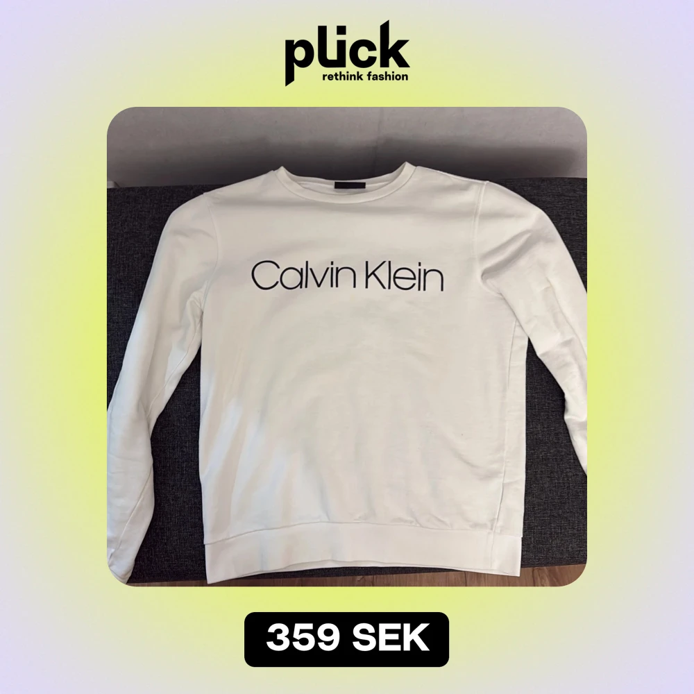 Säljer en stilren vit tröja från Calvin Klein i storlek S. Tröjan har en klassisk design med långärmade ärmar och Calvin Klein-loggan tryckt på framsidan. Perfekt för en avslappnad och trendig look. Passar till både vardag och fest!
