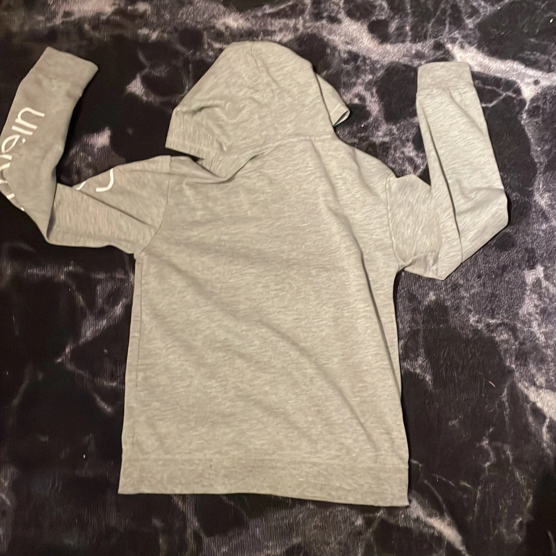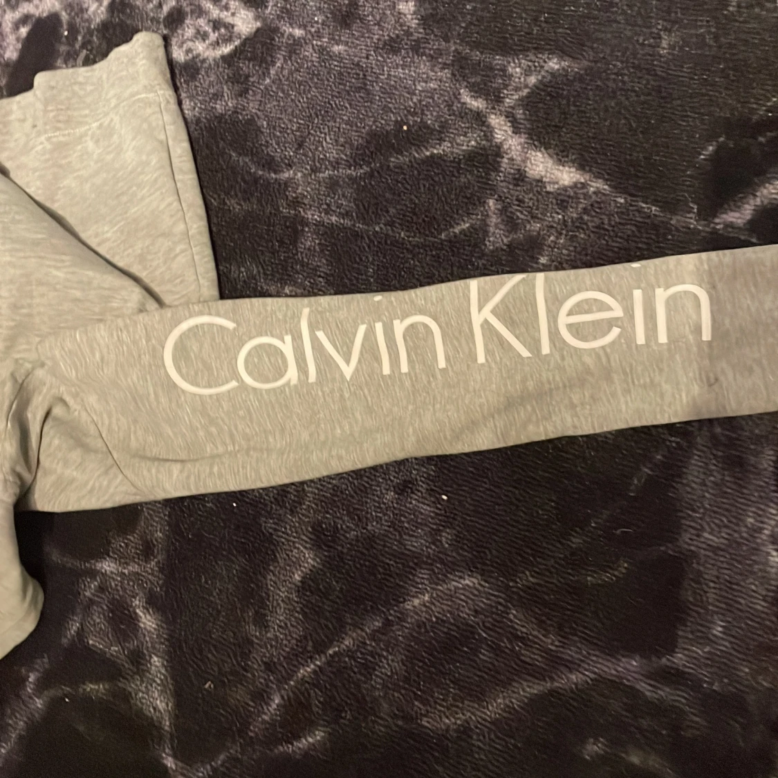Säljer en stilren grå hoodie från Calvin Klein med dragkedja framtill. Tröjan har långa ärmar och en luva, samt Calvin Klein-logga på armen