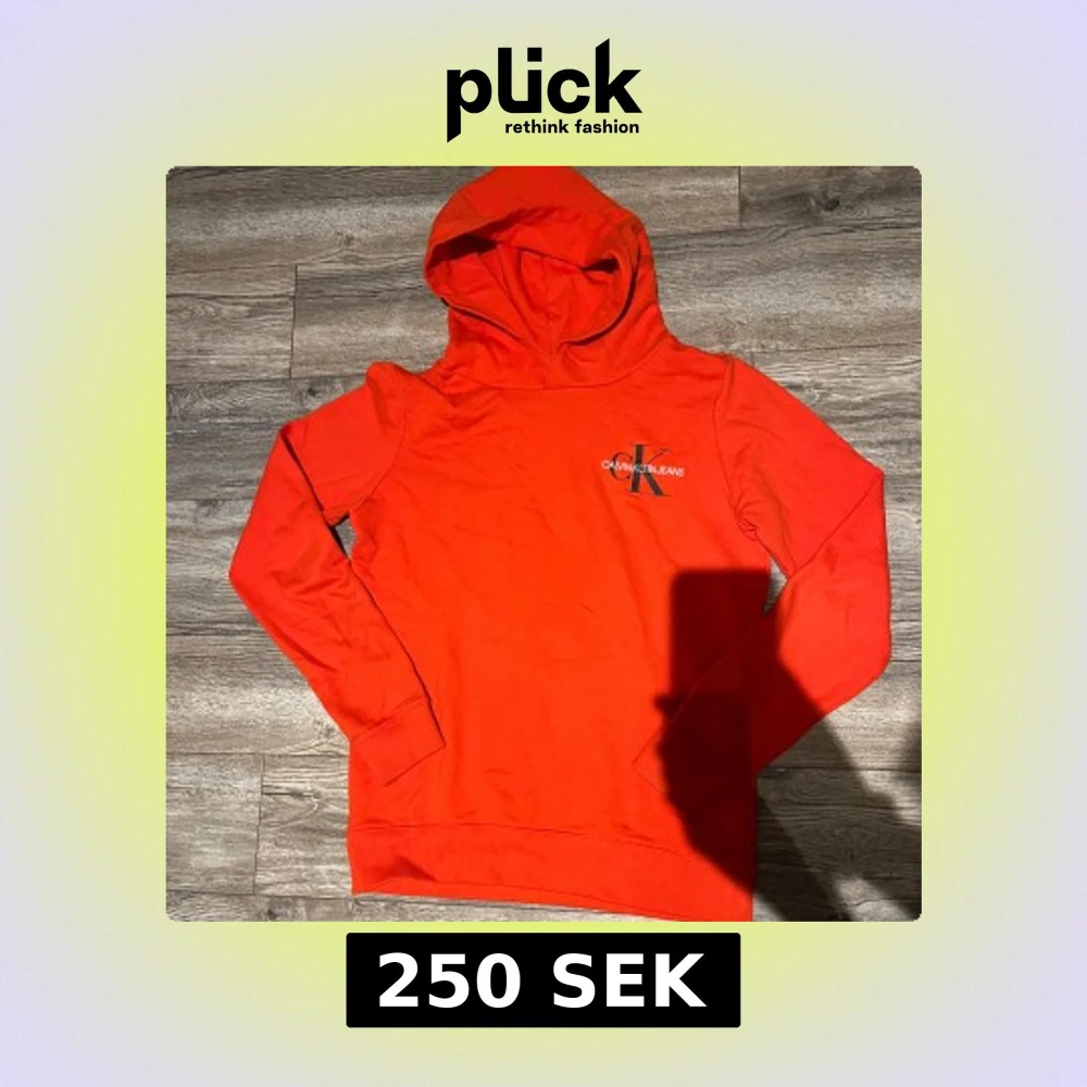Snygg orange hoodie från Calvin Klein. Inte alls så använd, inga biverkningar som skulle märkas, så i bra skick. Pris kan diskuteras. S, skulle fungera för M men blir lite mer trång.