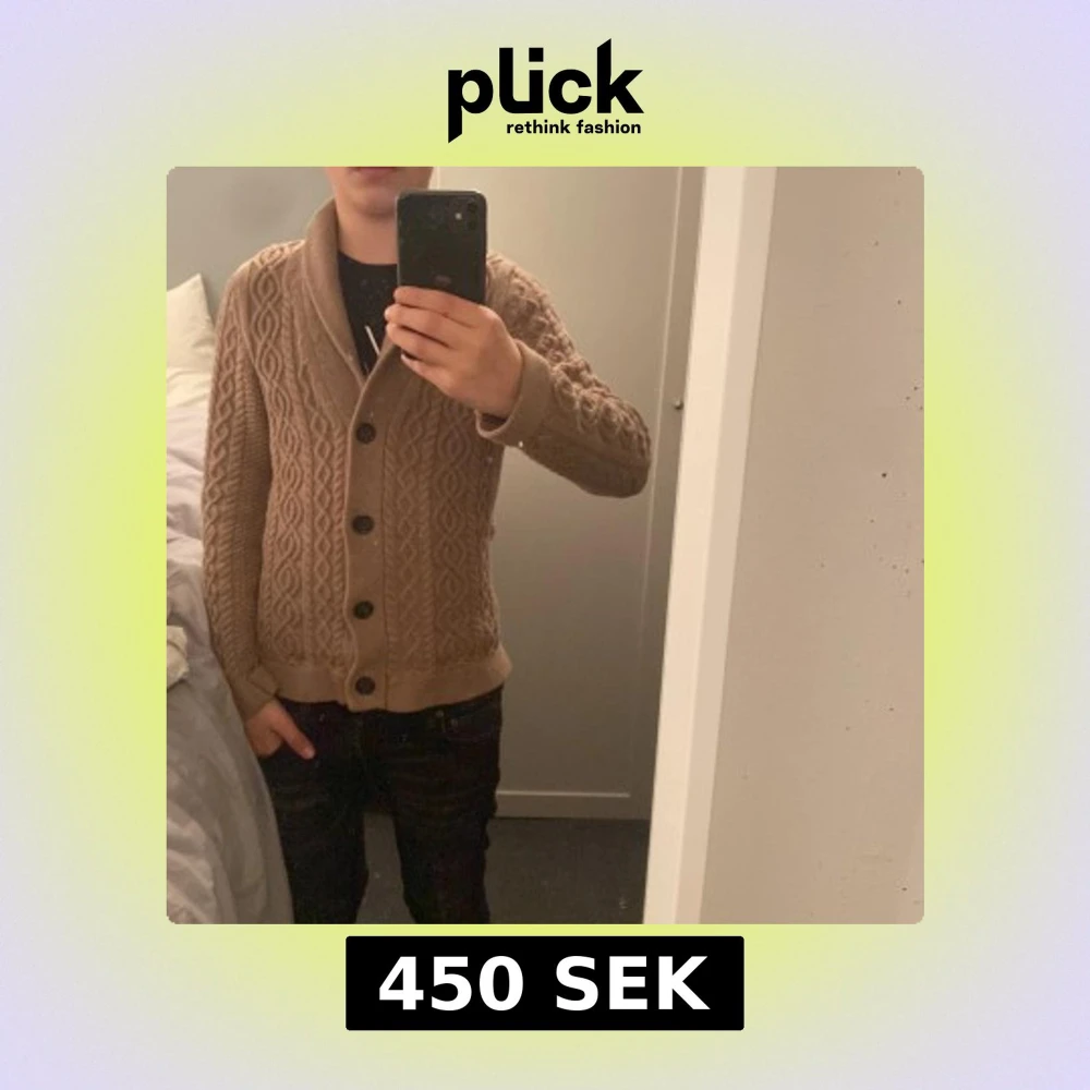 Säljer en snygg beige stickad kofta med ett klassiskt flätmönster. Koftan har långa ärmar och stora knappar framtill. Perfekt för kyliga dagar! Ny pris 1299kr mitt pris är 450kr. Mvh Damian