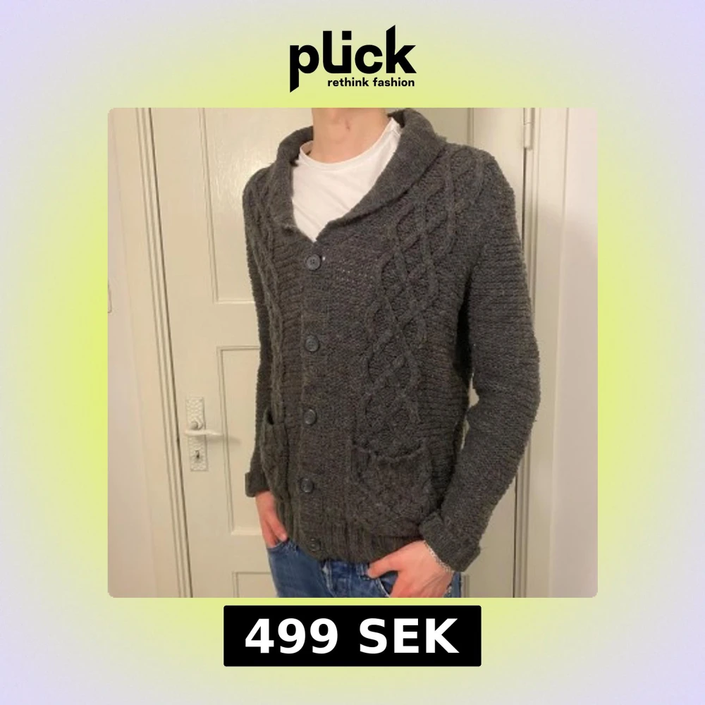 Säljer en snygg grå stickad kofta med knappar framtill och två fickor. Bra skick, storlek L. Pris 499 eller kom med bud! BVSA💰💰