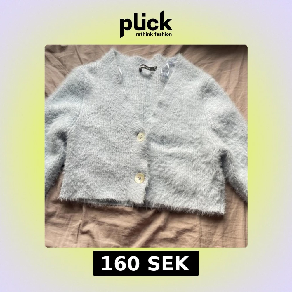 Mysig ljusblå kofta från Gina Tricot i fluffigt material. Den har en croppad passform med knappar framtill och långa ärmar. Perfekt för kyliga dagar när du vill ha något bekvämt och stilrent. Använd 1 gång, jättefin till layering