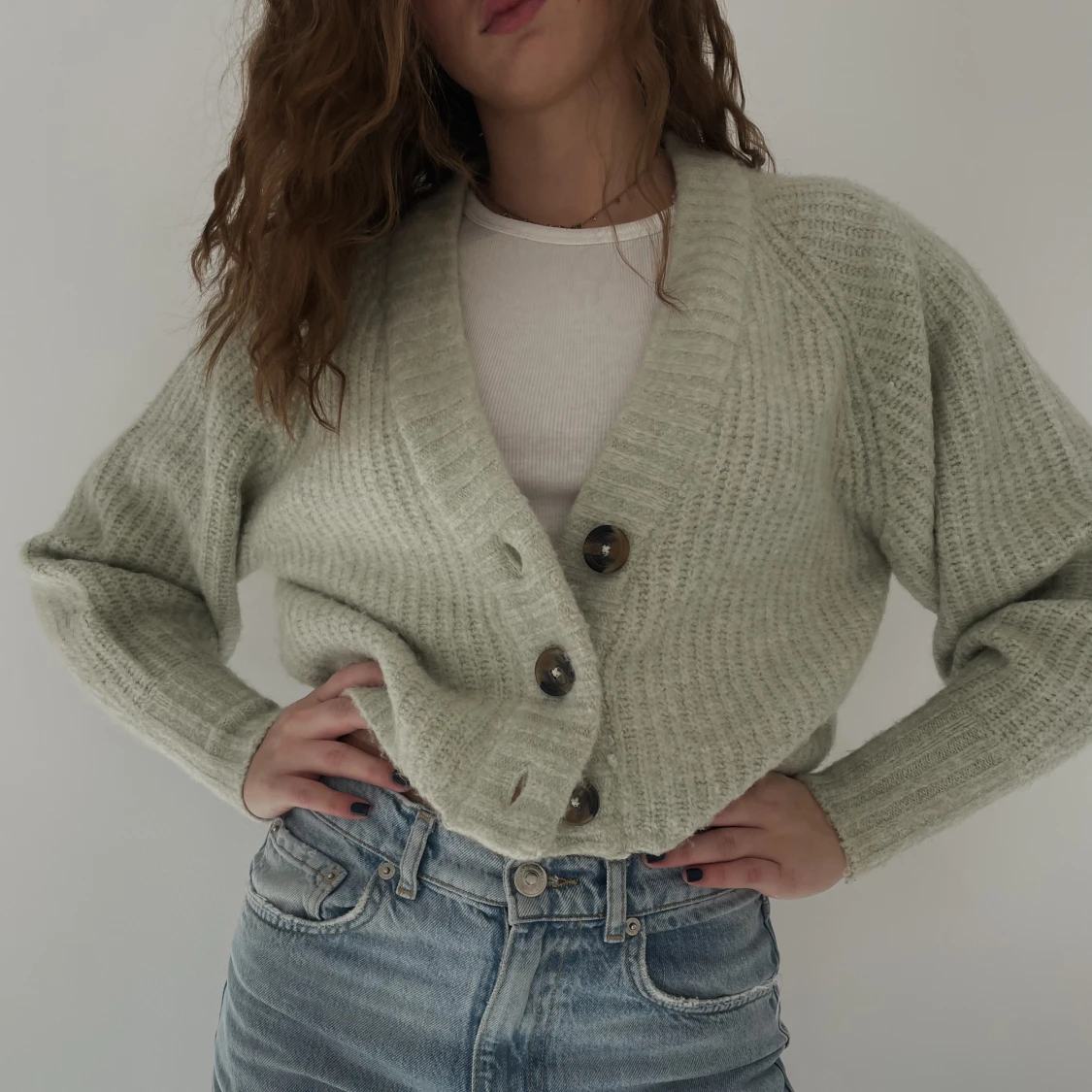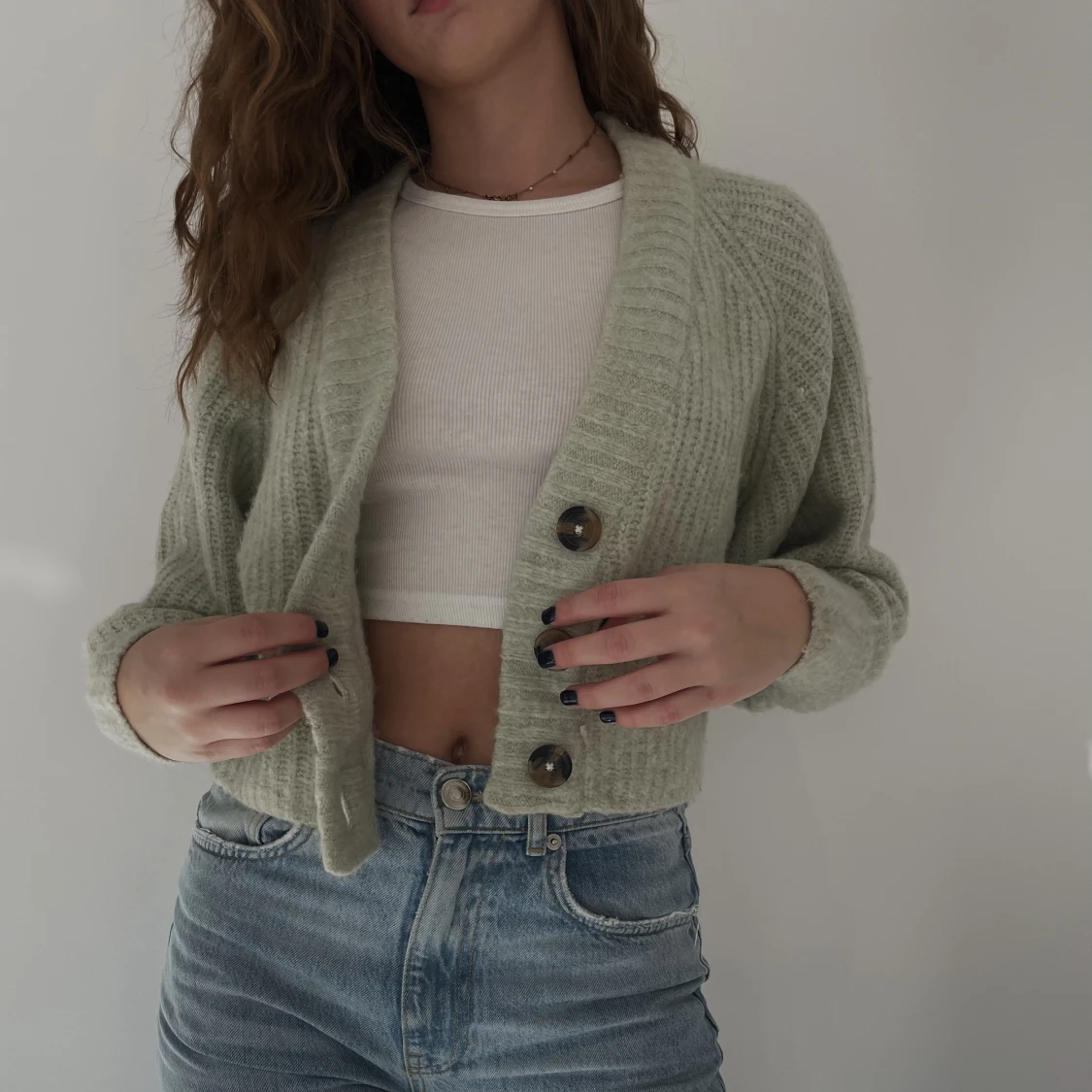 Stickad cardigan i pastel grön färg💗 (Köparen står för frakten)