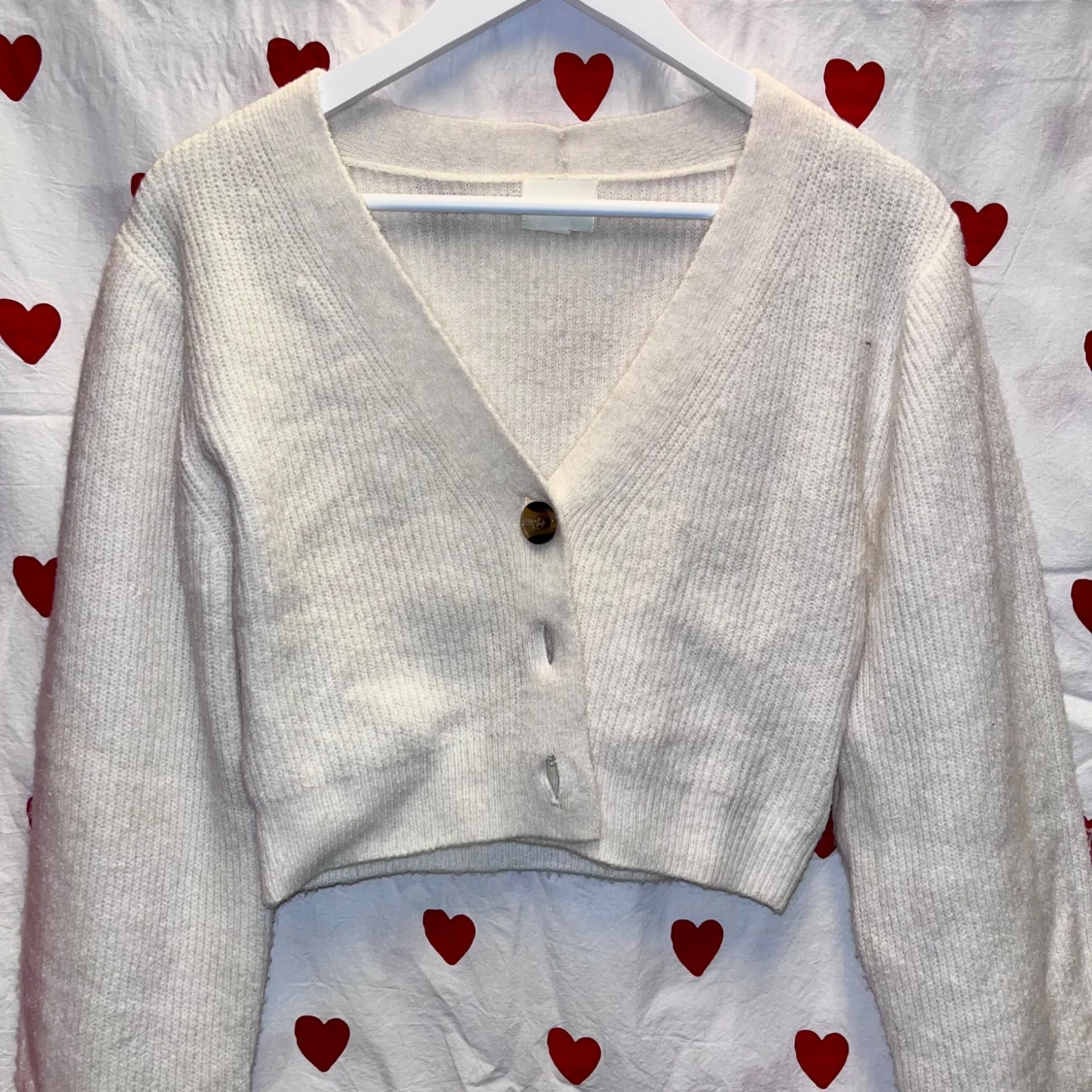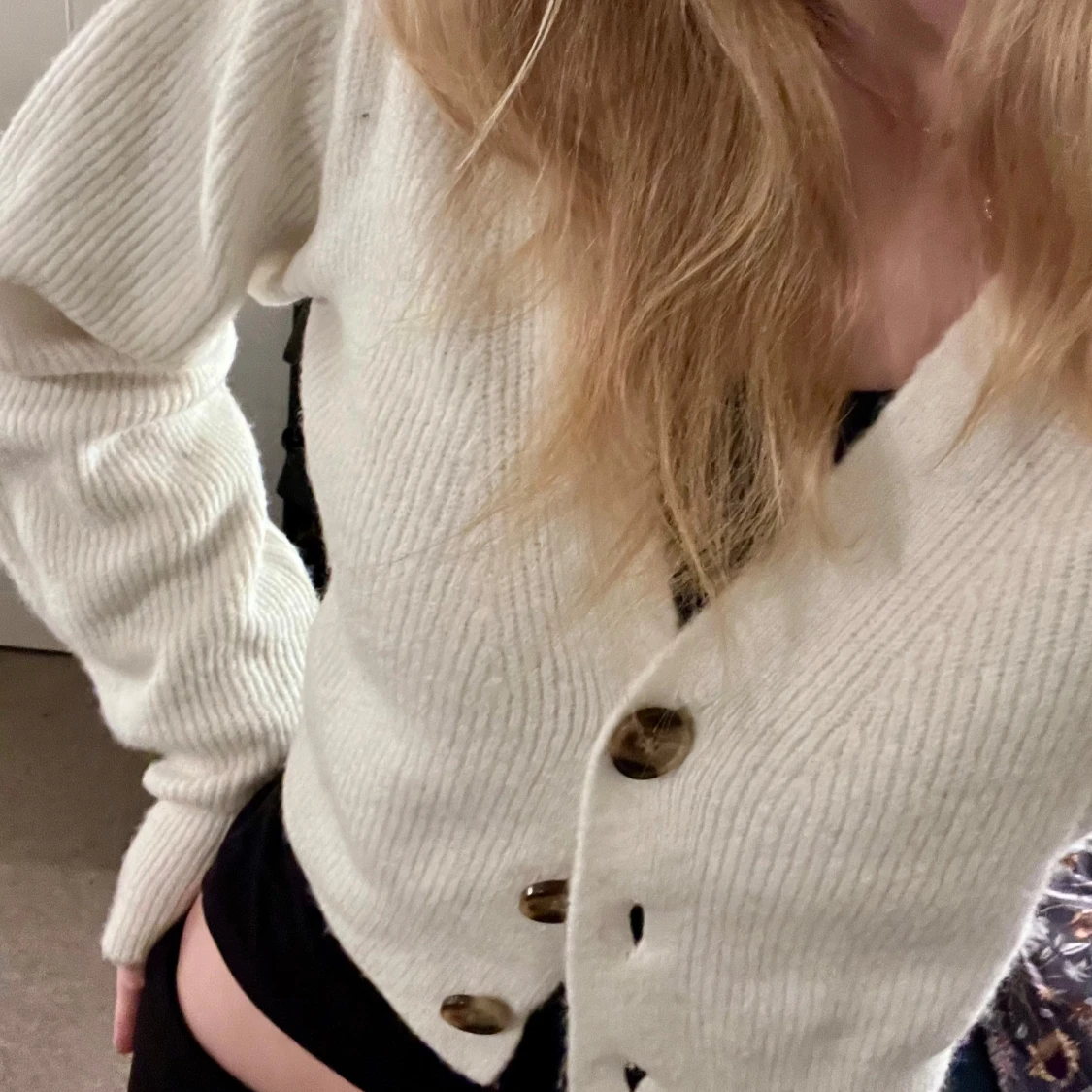 En gullig och varm vit stickad kofta som jag har anvĂ€nt ungefĂ€r tre gĂ„nger men som nu bara samlar dammđŠą