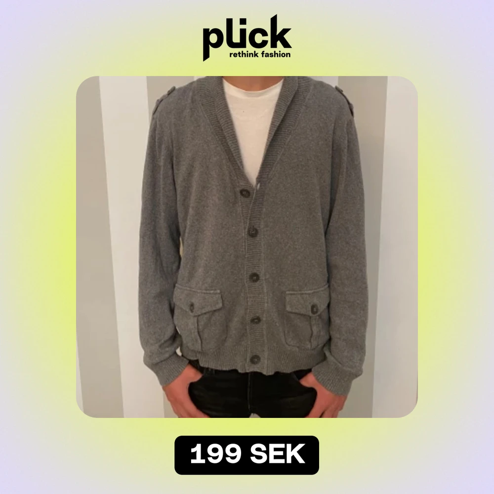 Grå cardigan med knappar modellen är 172 och väger 56kg