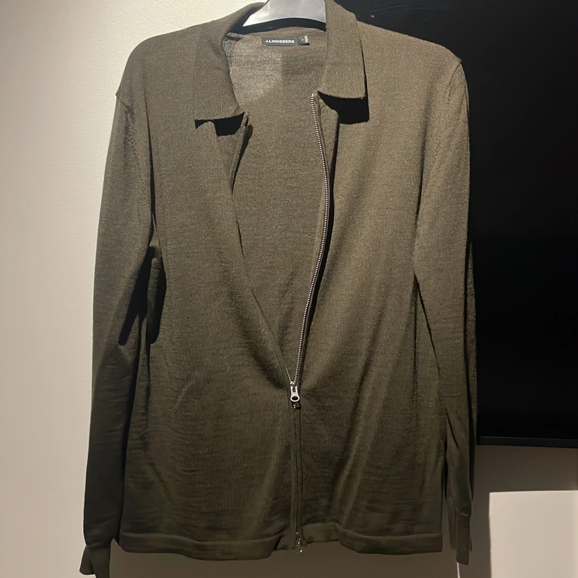 Säljer en stilren olivgrön tröja från J.Lindeberg. Den har en praktisk dragkedja framtill och är tillverkad i ett mjukt material som känns skönt mot huden. Perfekt för både vardag och lite finare tillfällen. Passar bra till höst och vår! Nypris 2400