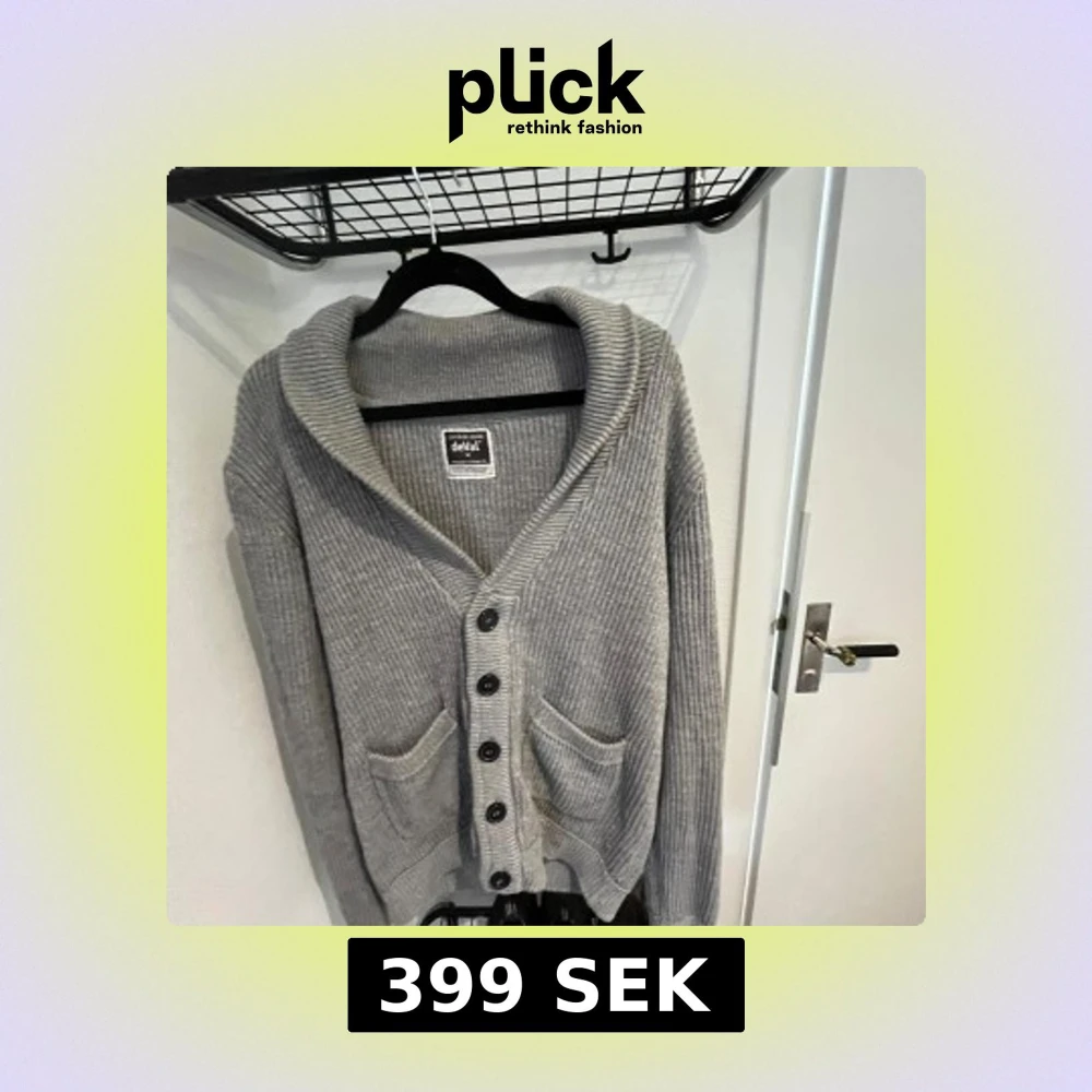 Säljer en stilren grå kofta från deVal med ribbad struktur och stora knappar framtill| Koftan har en bred krage och praktiska fickor| Hör av er om frågor 😄|