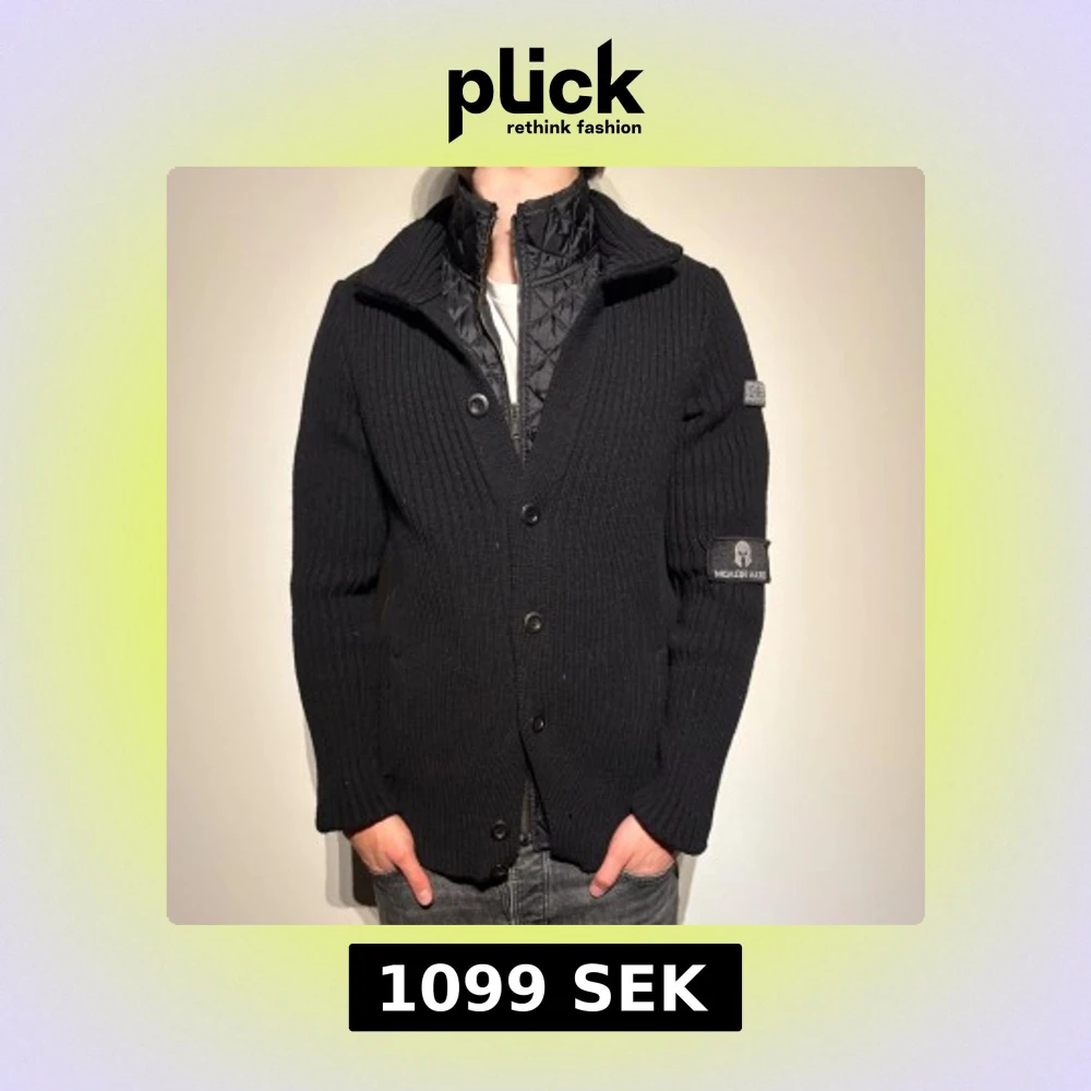 Sjukt fet cardigan med dunväst insydd på insidan och patches på armen (nedersta patchen är en lagning). Storlek XL men sitter som M/L. Hör av er vid frågor!