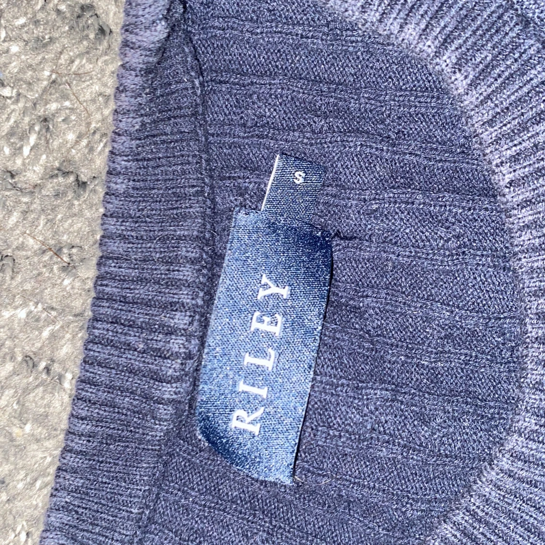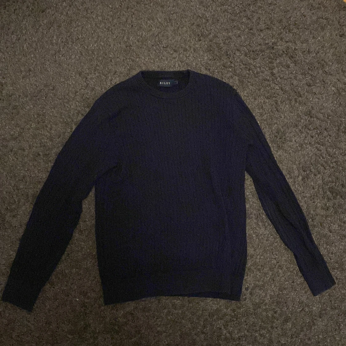 Säljer en stilren mörkblå tröja från Riley. Den är långärmad och har en klassisk rund halsringning. Perfekt för kyligare dagar och kan enkelt matchas med olika outfits.ny skick