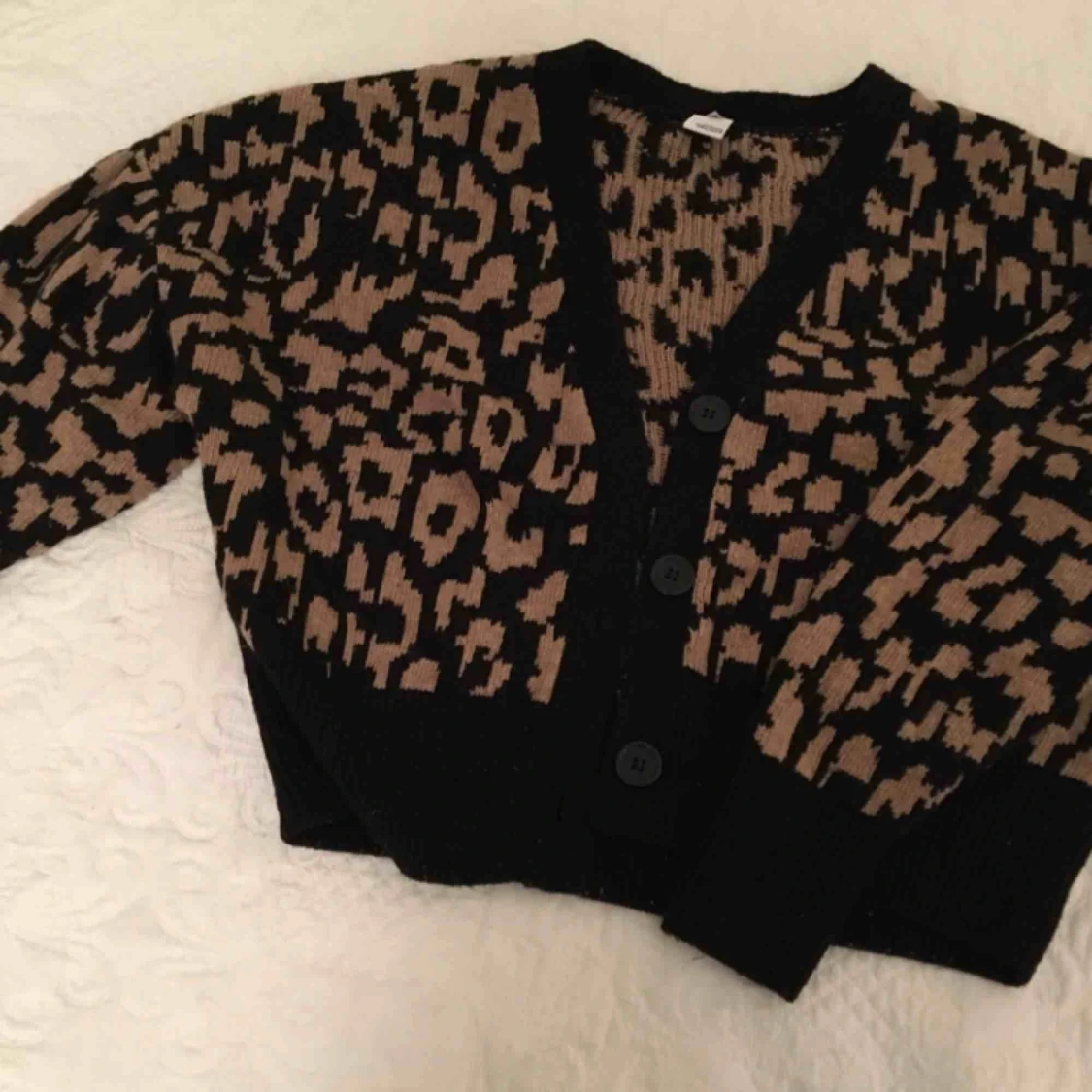 Gosig och lite croppad kofta från Visual clothing project, som finns på MQ. Rejäl och varm. Fint leopardmönstrad i beige och svart. Oanvänd!
