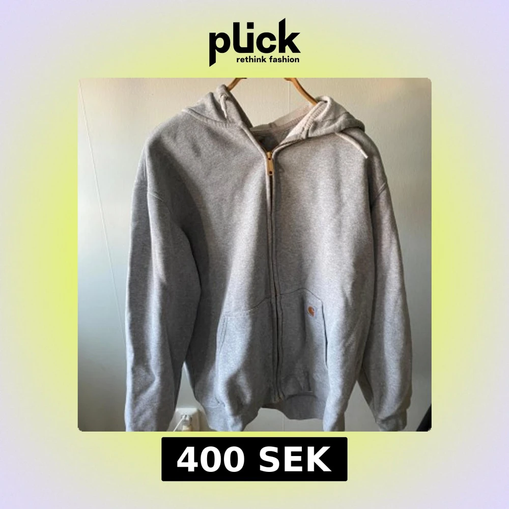 Säljer en grå hoodie från Carhartt i loose fit med dragkedja framtill och huva med snörning. Tröjan har två stora fickor och är tillverkad i mjuk bomullsmix, perfekt för chill dagar. Klassisk Carhartt-logga på fickan.