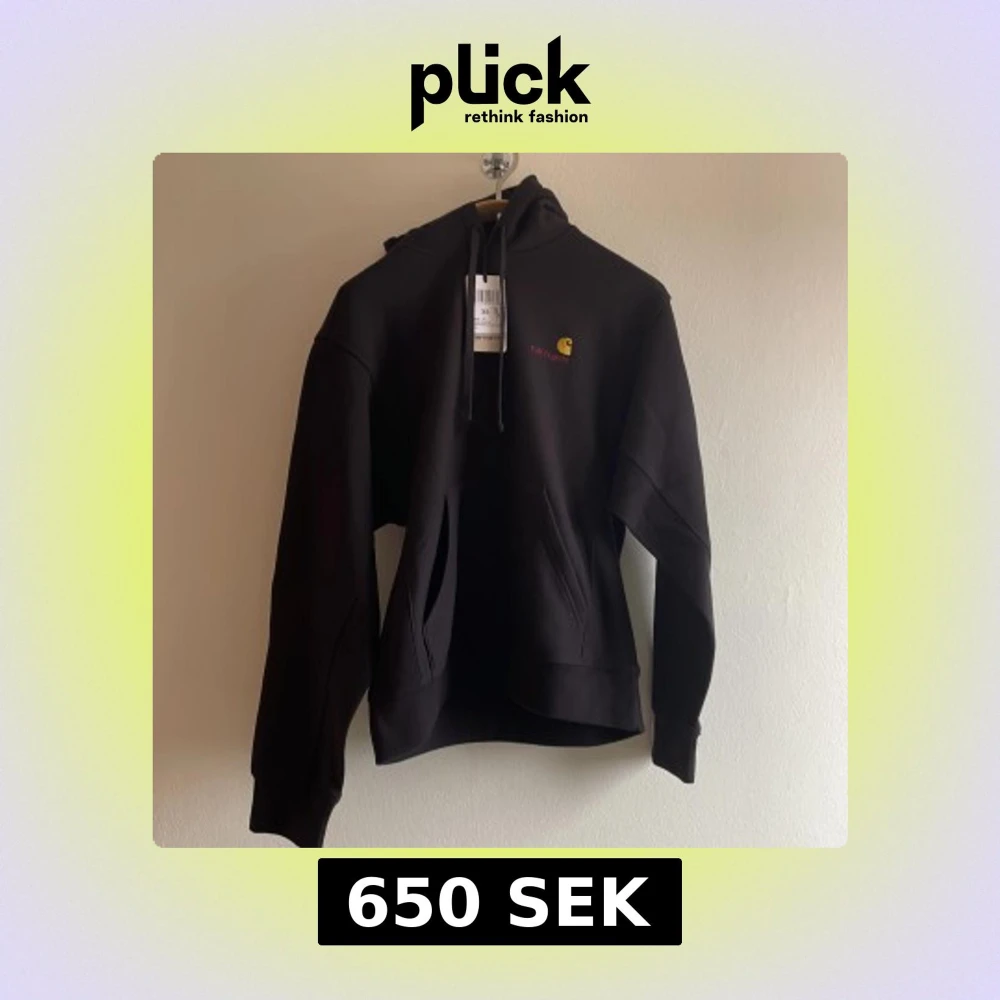 Helt ny Carhartt hoodie med justerbar dragsko i huvan och en praktisk ficka på magen. Carhartt loggan är broderad på bröstet. Prislapp kvar, nypris ca 1400 kronor. Luva, känguruficka, midjeresår. Material ytterskal: 80 % bomull, 20 % polyester. Material ribbstickning: 97 % bomull, 3 % elestan. Carhartt Hooded American Script, storlek XS. Färg: svart
