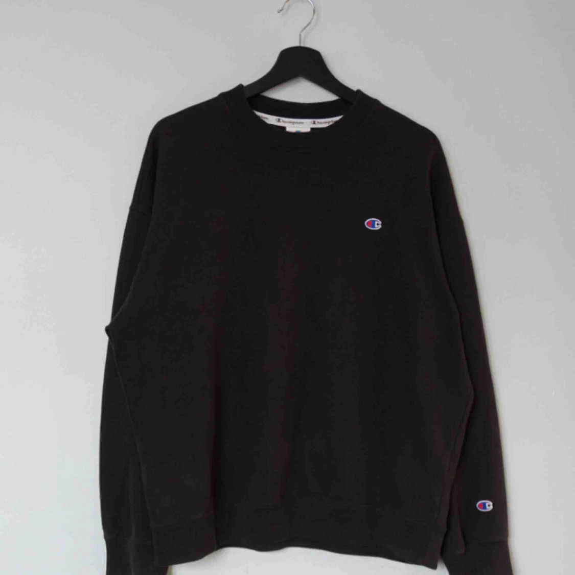 Säljer en svart Champion x Weekday tröja av modellen Feel Crewneck Sweatshirt! Size: Small (oversized, passar medium) Cond: 8,5/10 (inga tydliga tecken på användning)