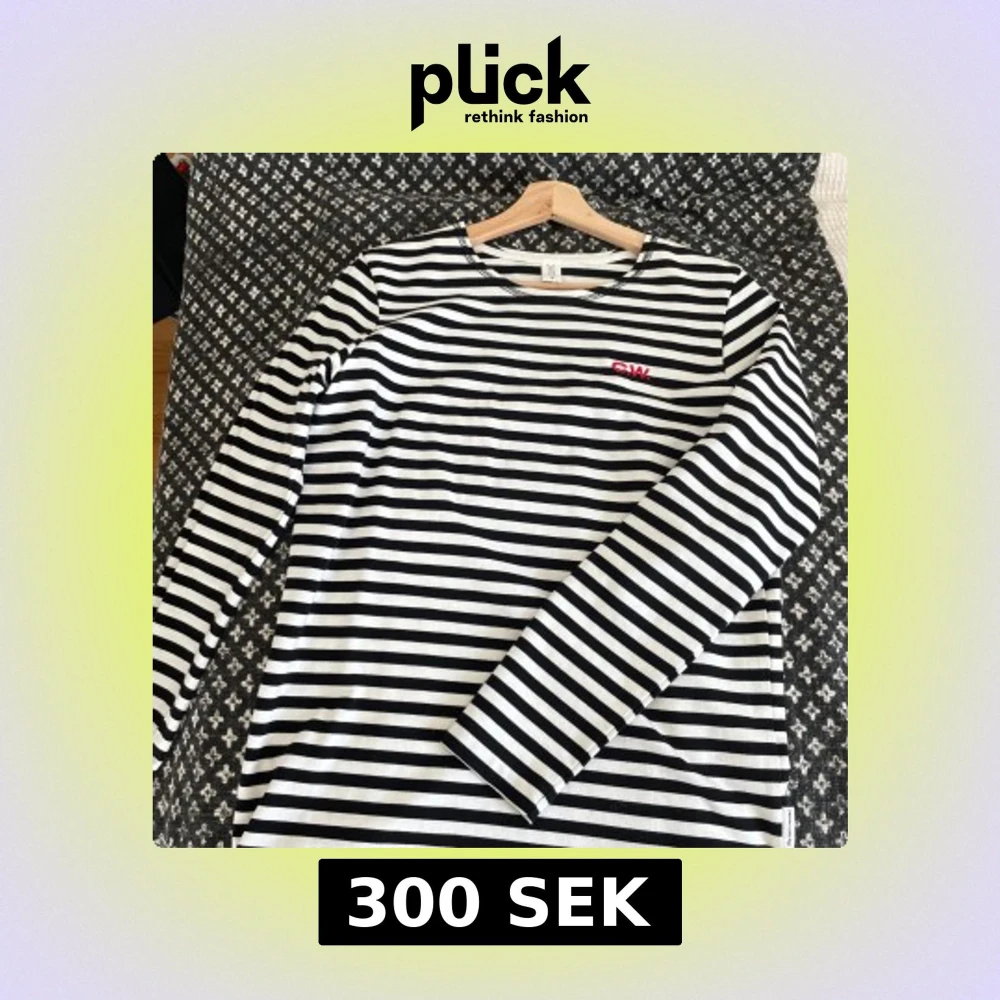 Säljer en svartvit randig långärmad tröja från C.W. i bomull. Tröjan har klassiska horisontella ränder och en broderad röd C.W.-logga på bröstet. Perfekt för dig som gillar enkel och stilren design med en twist. Storlek S. Skriv för mer bilder eller övriga frågor.