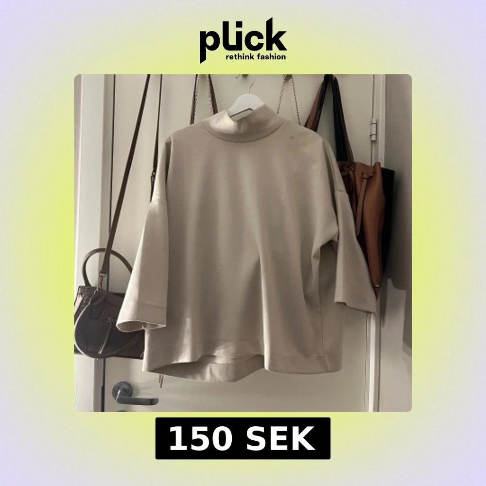 Snygg beige polotröja från Carin Wester med loose passform och trekvartsärmar. Tröjan har en hög krage och är tillverkad i mjuk bomull. Perfekt för dig som gillar minimalistisk stil och vill ha något som är både chill och trendigt. Lite fläckar på framsidan men går förmodligen bort i tvätten💕