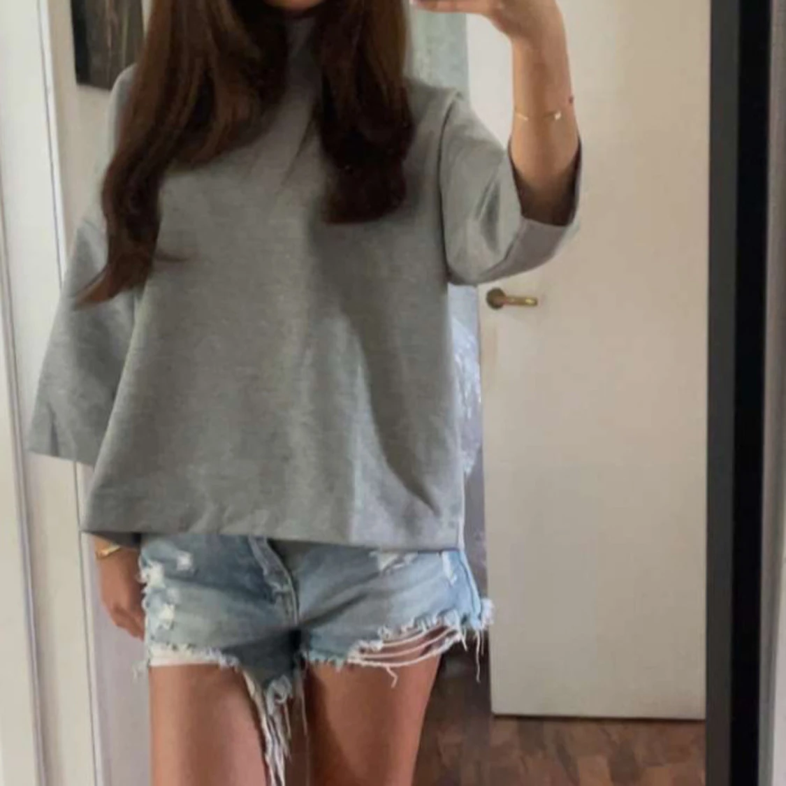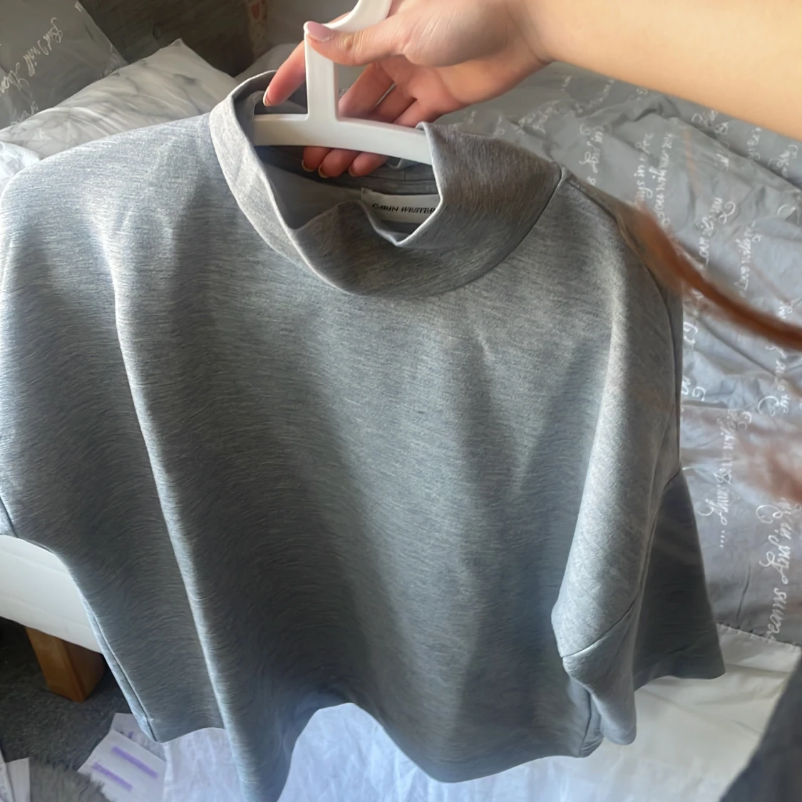 Säljer en stilren grå trekvartsärmad tröja från Carin wester . Tröjan har en hög krage och trekvartsärmar, vilket ger en avslappnad look. Perfekt för en casual outfit. Passar bra till både jeans och shorts.