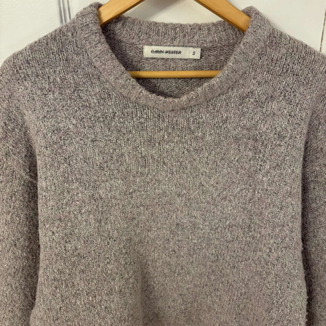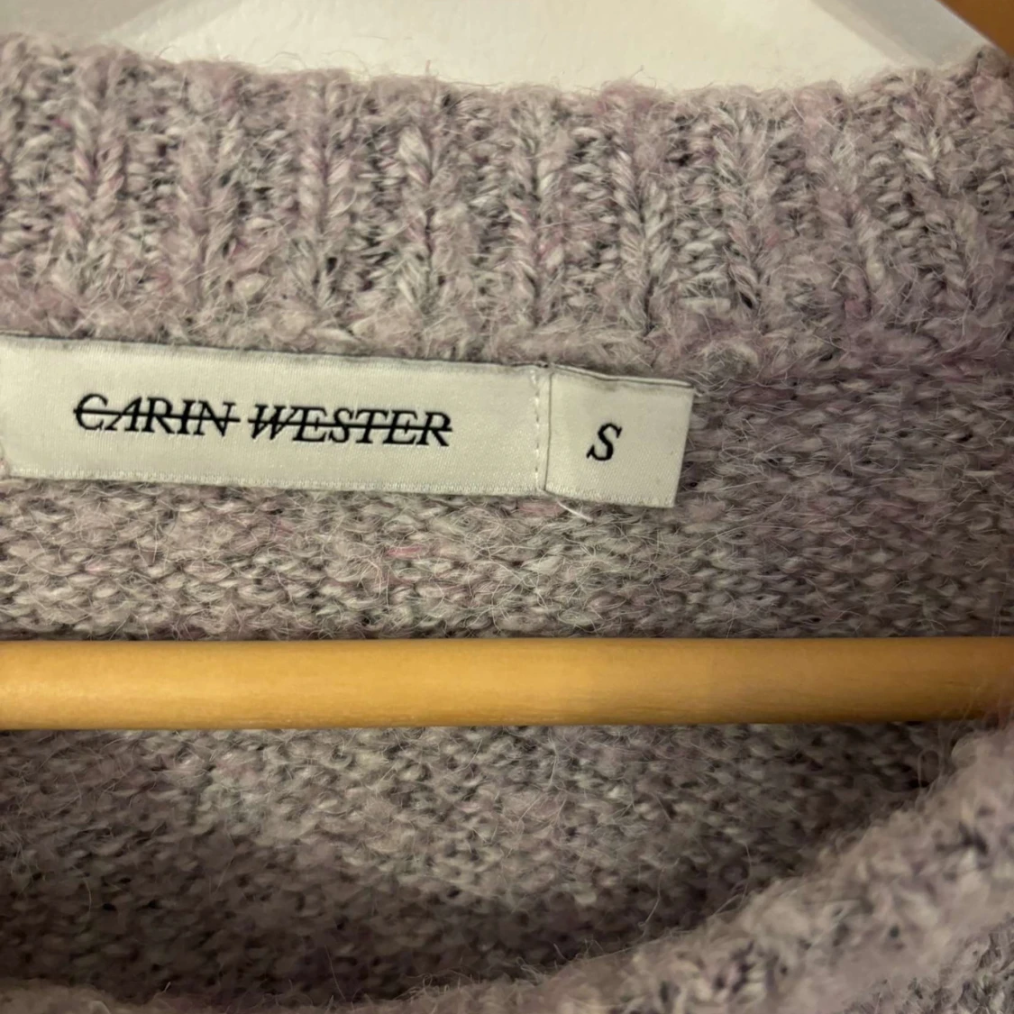 Mysig grå stickad tröja från Carin Wester i storlek S. Perfekt för kyliga dagar med sin mjuka och bekväma passform. Tröjan har en rund halsringning och långa ärmar. Finns även i ljusblå!