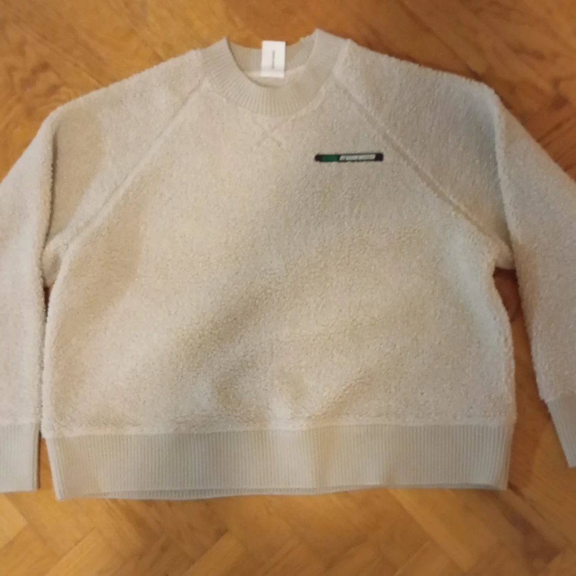 Mysig beige fleece-tröja från Carin Wester med ribbade muddar vid hals, ärmslut och nederkant. Tröjan har en enkel design med liten logga på bröstet och är perfekt för kyliga dagar. Oversized passform och långärmad modell.