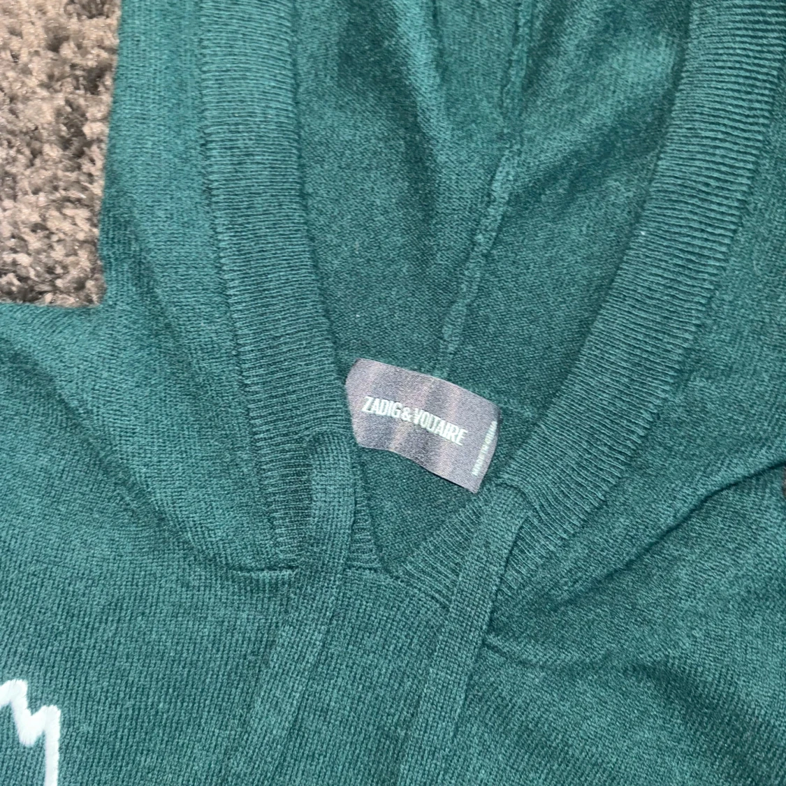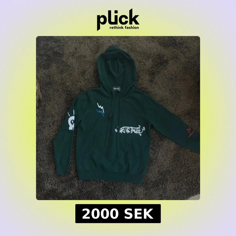 Skitsnygg mörkgrön hoodie från Zadig & Voltaire med coola vita och blå grafiska tryck på bröstet och ärmarna. Aldrig använt säljer då den förtjänar att komma till användning!!! Verkligen så snygg å unik! Kan tänka mig gå ner i pris vid snabb affär