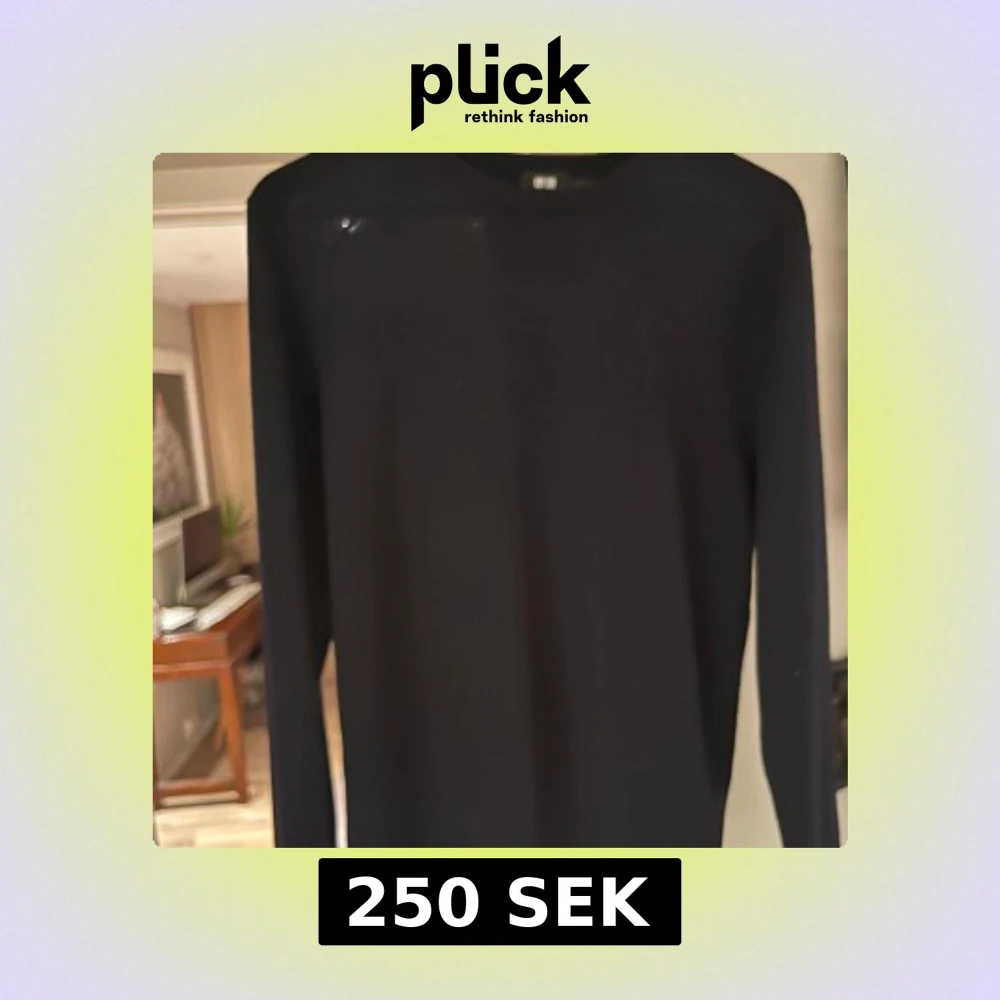 Säljer en stilren svart tröja från Uniqlo. Tröjan har en klassisk design med rund hals och långa ärmar, perfekt för en minimalistisk look. Passar bra till både vardag och mer uppklädda tillfällen.