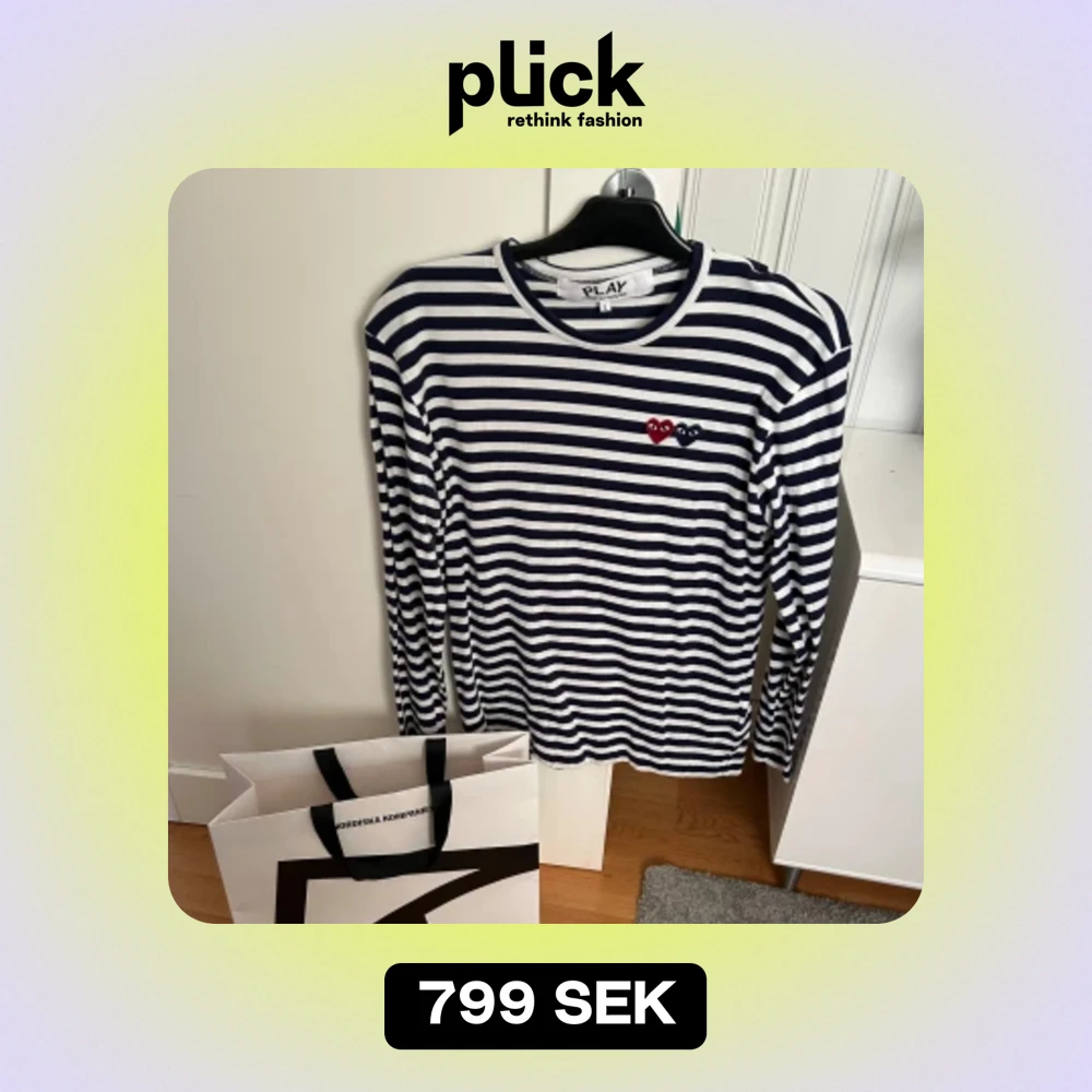 Säljer denna snygga COMME ses Garcons långärmade. Färgen är blåvit randig. Köptes på NK för 1799kr för ett tag sedan, jag säljer för endast 649kr. 10/10 skick. Strl L.
