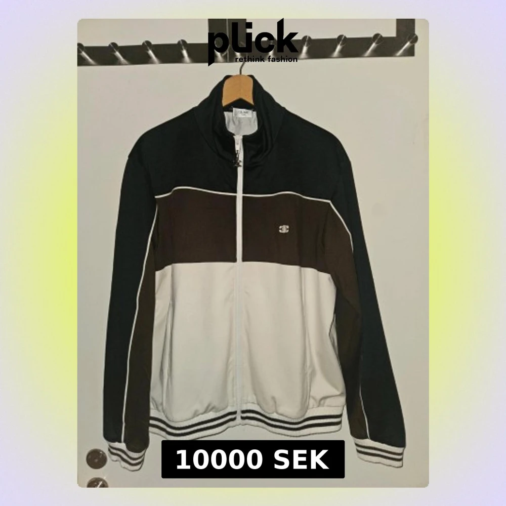 Celine tracksuit jacka i helt nyskick, använt kanske 3 gånger annars har den bara legat i garderoben då jag inte haft tillfälle att använda den.. Nypris i affär ca 15000 kronor. Den är i storlek XL, men jag använder Medium på mina kläder/jackor och den här passar perfekt.