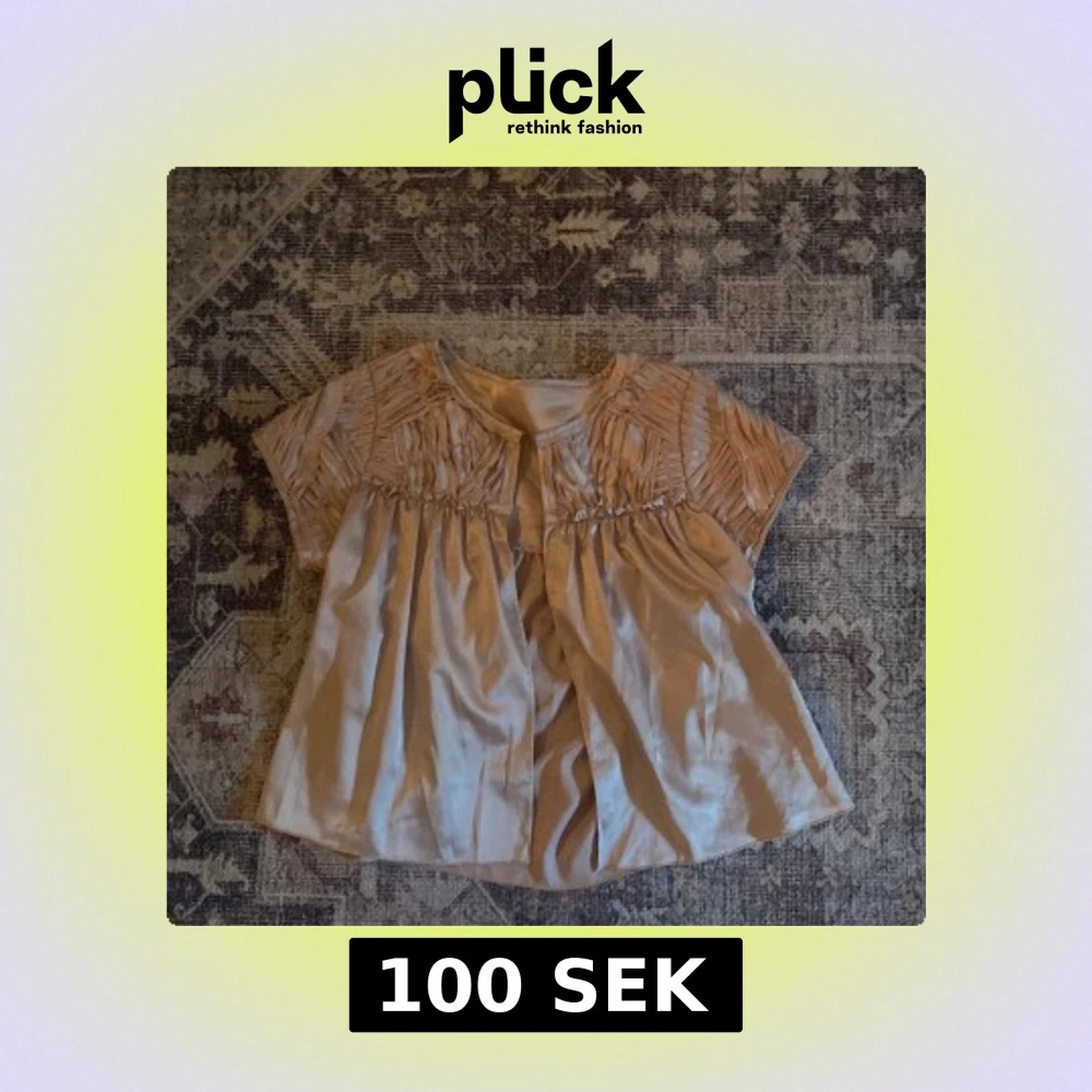 Supersöt blus i champagnefärgad satin med korta ärmar och plisserade detaljer upptill. Den har en lös passform och ett glansigt material som ger en lyxig känsla. Perfekt för dig som gillar romantiska och trendiga plagg.