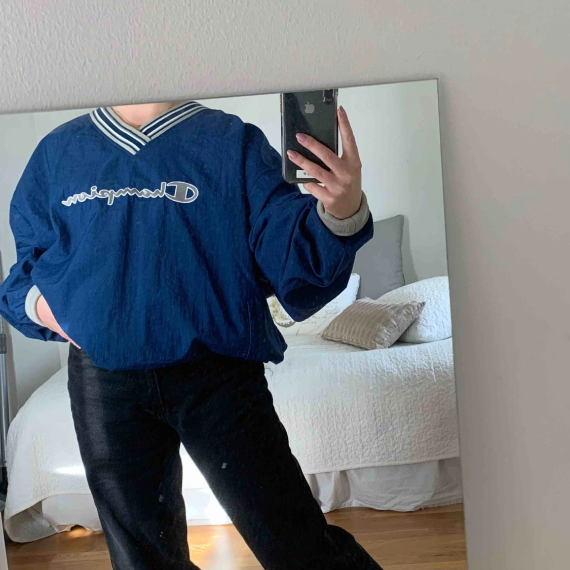 Stor vintage tröja från Champion, köpt på myrorna för 399kr ungefär för 1 år sedan och använd 1 gång. Skitsnygg och skönt material inuti😍kontakta för fler bilder köparen står för frakt