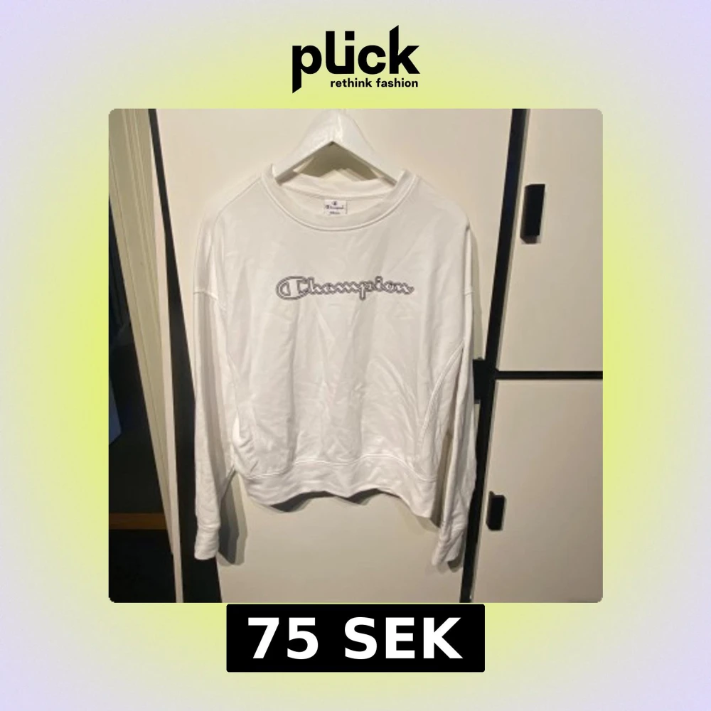 Säljer en vit långärmad sweatshirt från Champion med logga broderad framtill. Tröjan har en klassisk passform och är tillverkad i mjukt bomullsmaterial. Perfekt för en avslappnad och sportig stil.