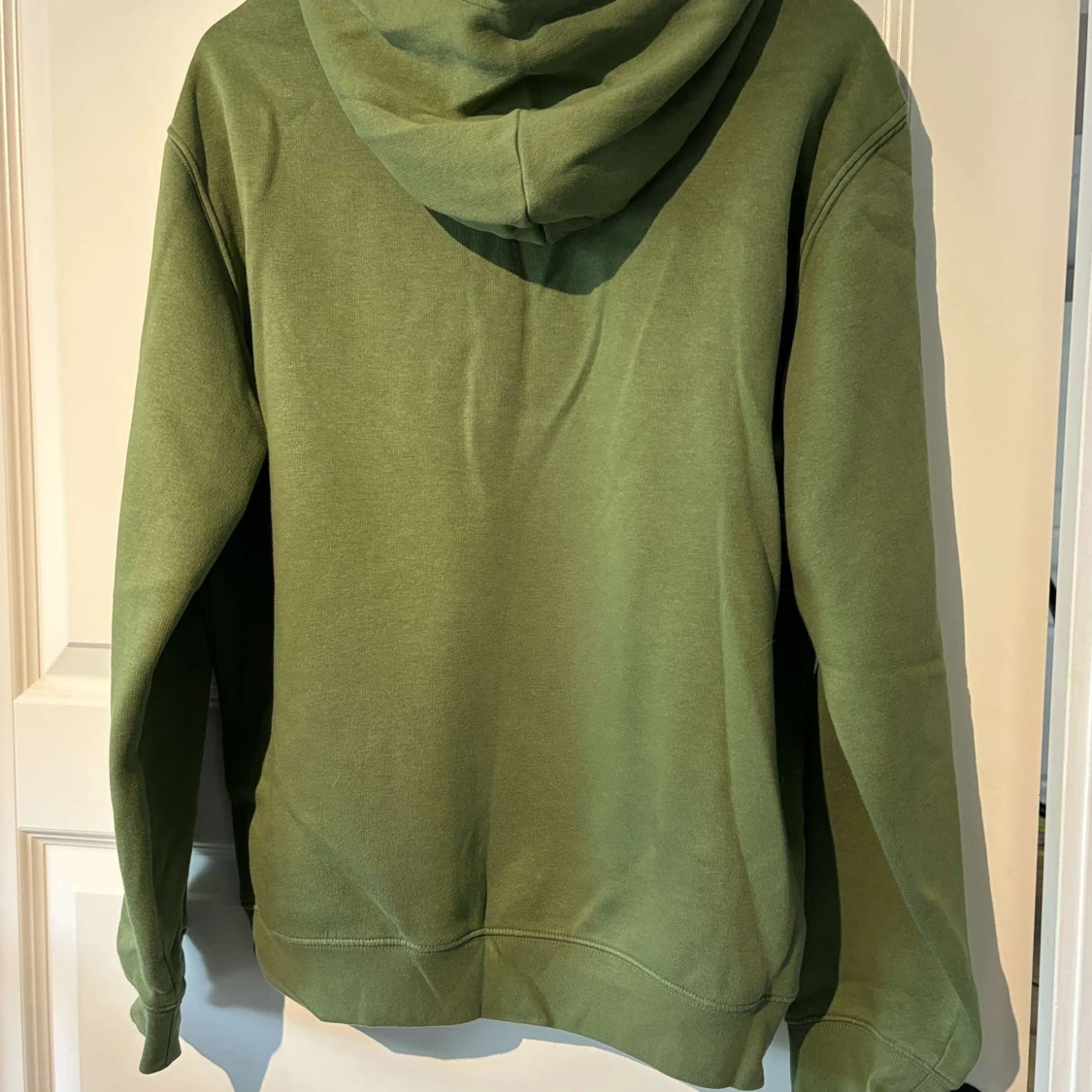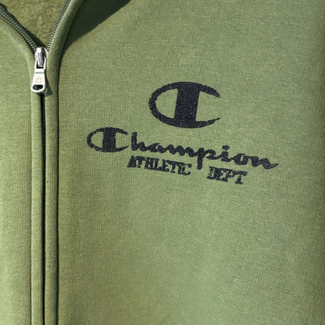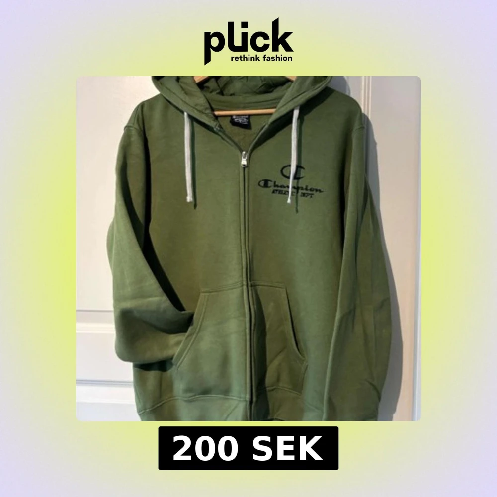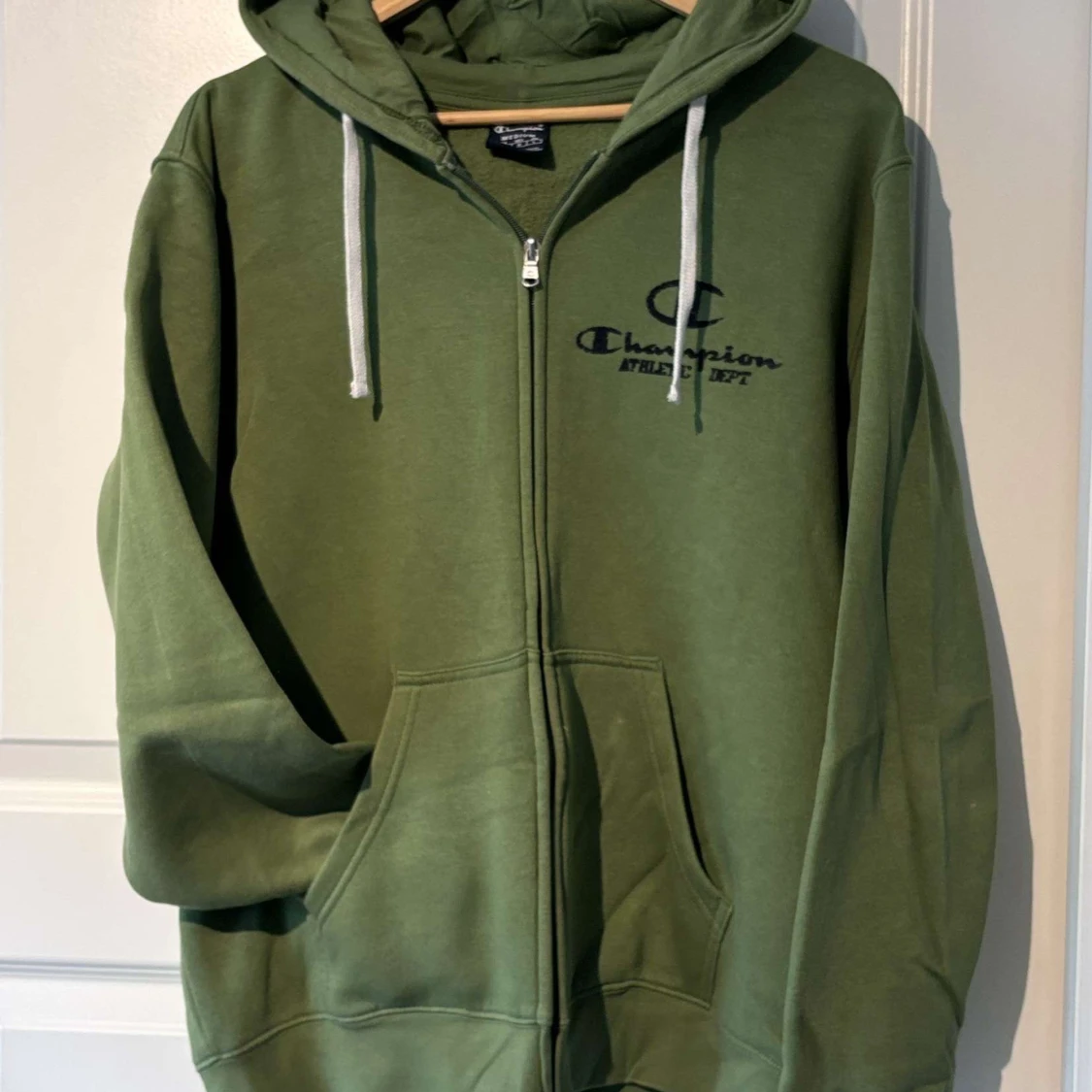 Säljer en grön hoodie från Champion med dragkedja framtill och huva med vita snören. Väldigt skön insida. Aldrig använd