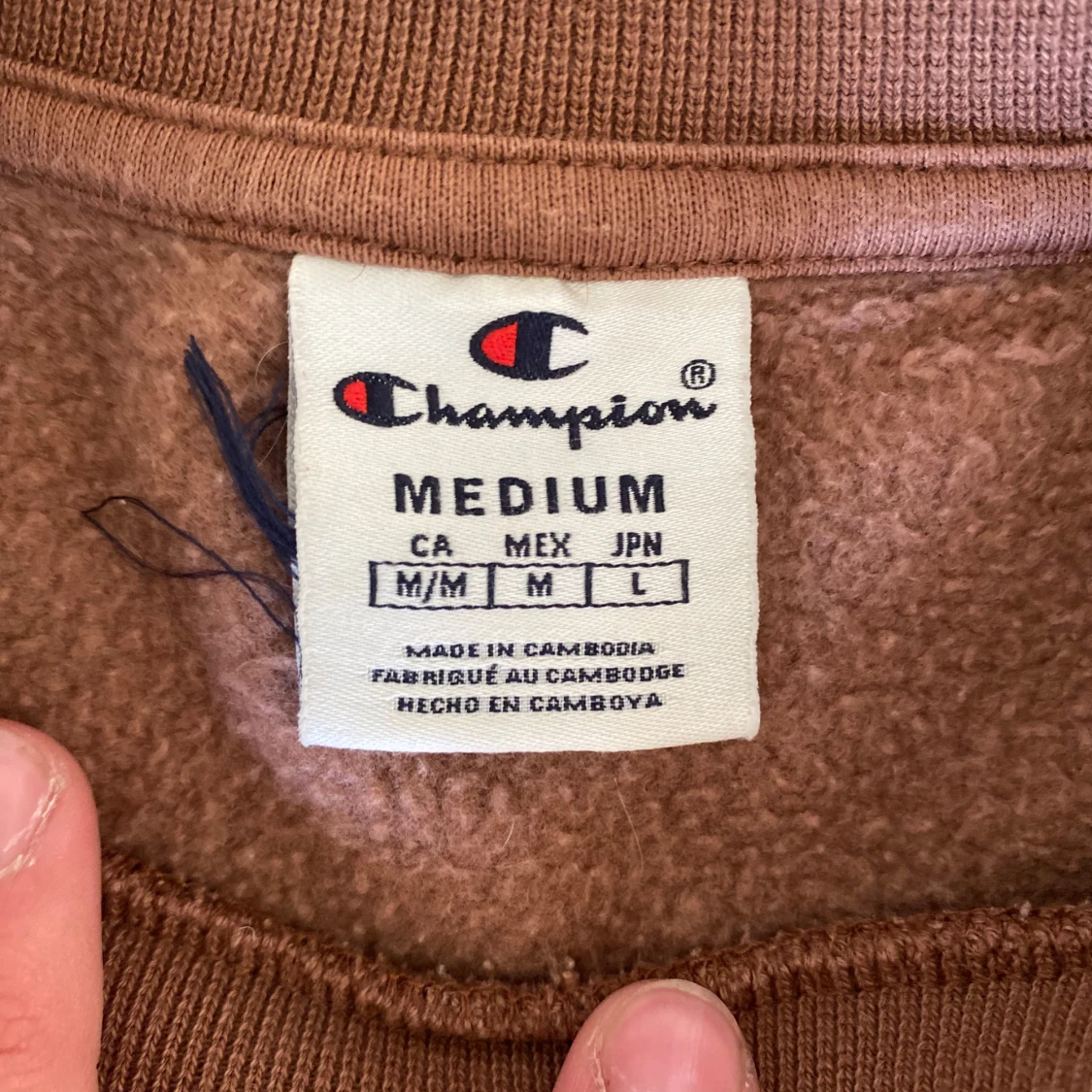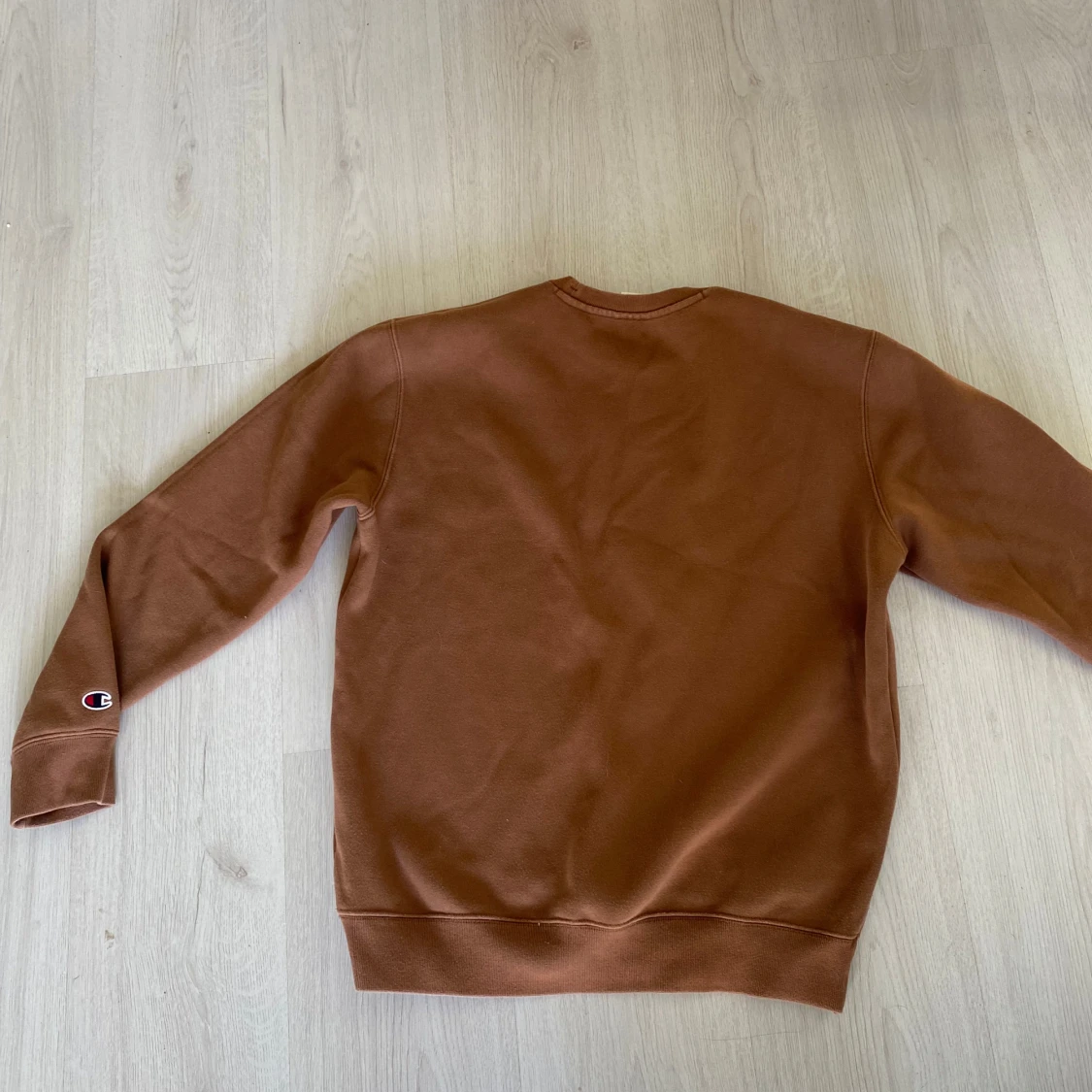 Säljer en brun sweatshirt från Champion i storlek medium. Tröjan har rund hals, långa ärmar och klassisk Champion-logga broderad på bröstet och ärmslutet. Mjuk insida och ribbade muddar för extra komfort. Perfekt för en chill och stilren look.